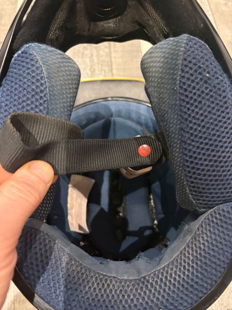 Nice motocross helmet strap works fine inside looks ok