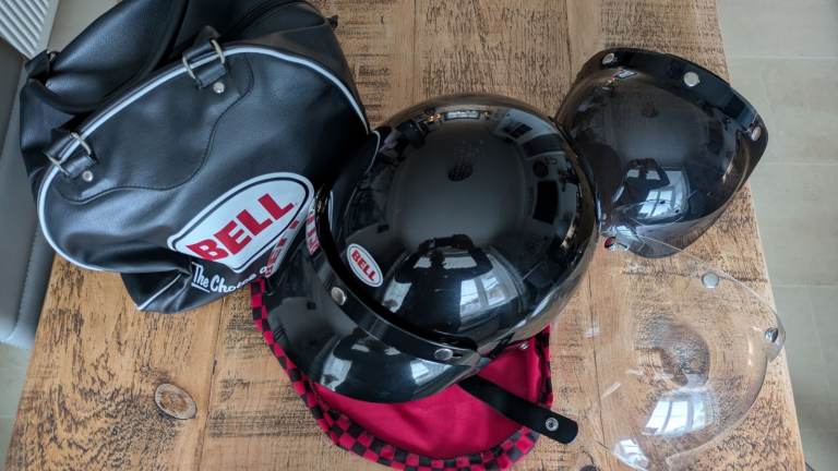 Posting for 13+ yearsBell open faced scooter motorcycle helmet, clear & dark visors, carry bag Size M
