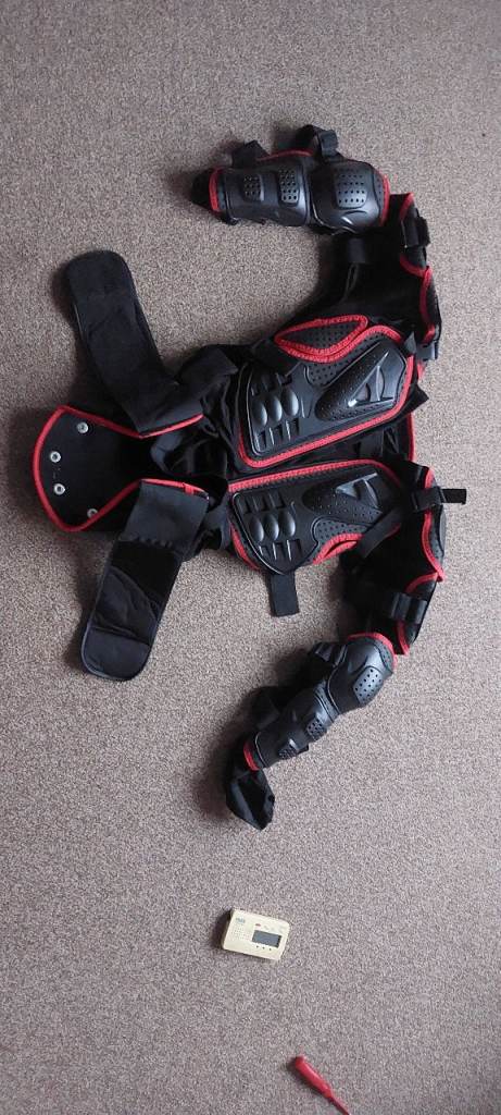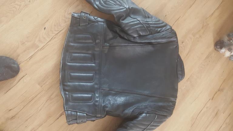 Black Mens Leather Akito Motorbike Jacket. Size 38" with built in back protector. Zips work. Also selling leather trousers as well in another add. £40