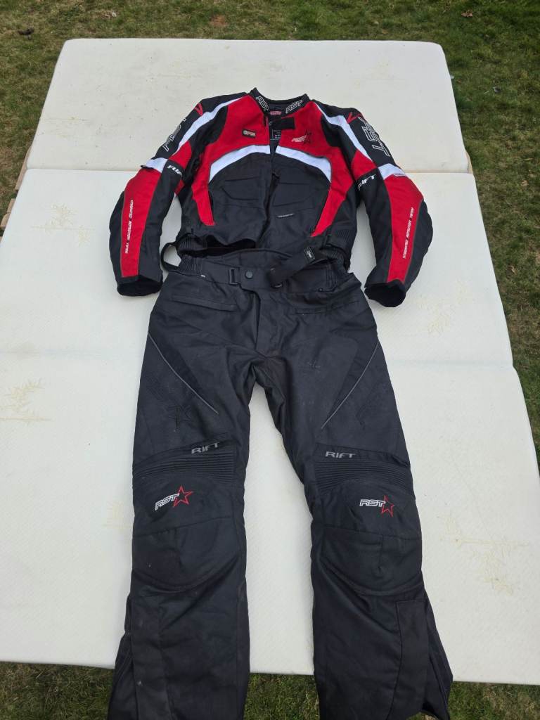 Black Mens Leather Akito Motorbike Jacket. Size 38" with built in back protector. Zips work. Also selling leather trousers as well in another add. £30