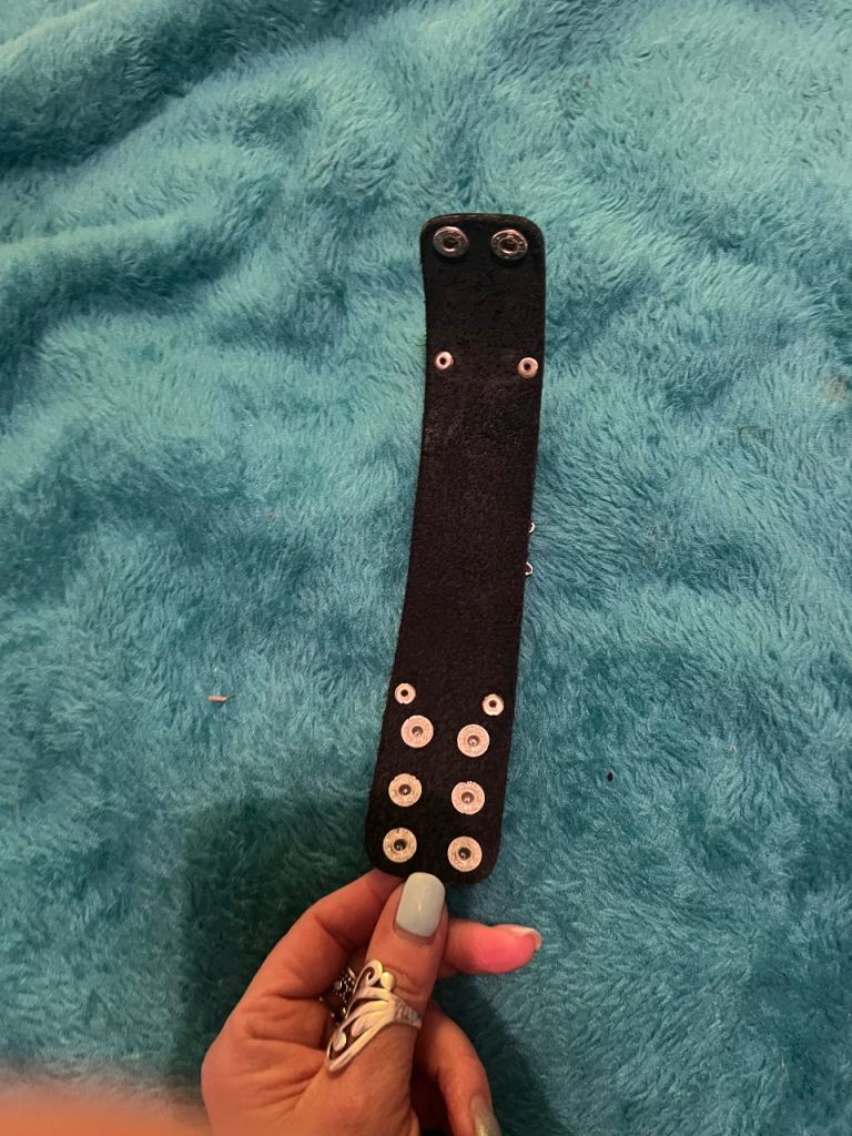 New Thick black leather wristband with skull motif, adjustable poppers for size ability.