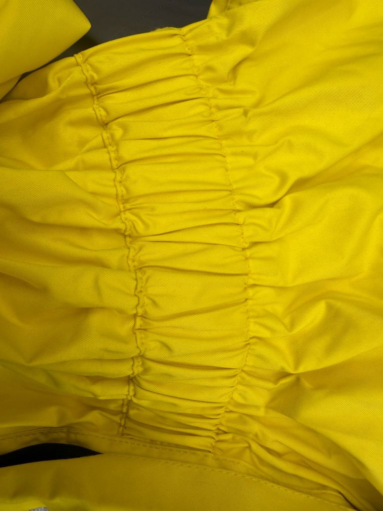 Selling my BMW Motorrad ProRain 3 rain suit in XL — bright yellow with crisp black “Motorrad” branding on the back.