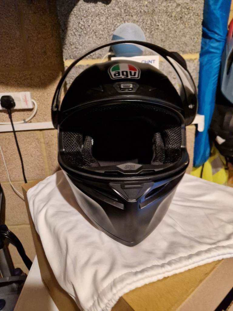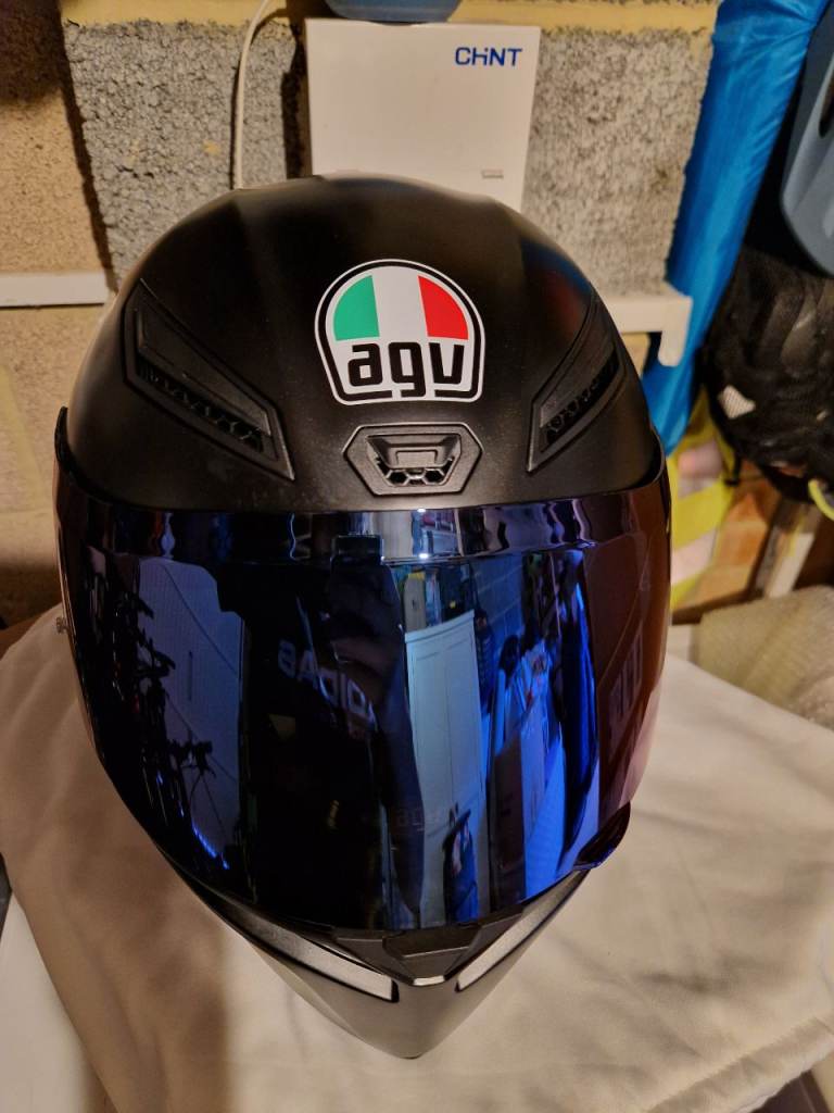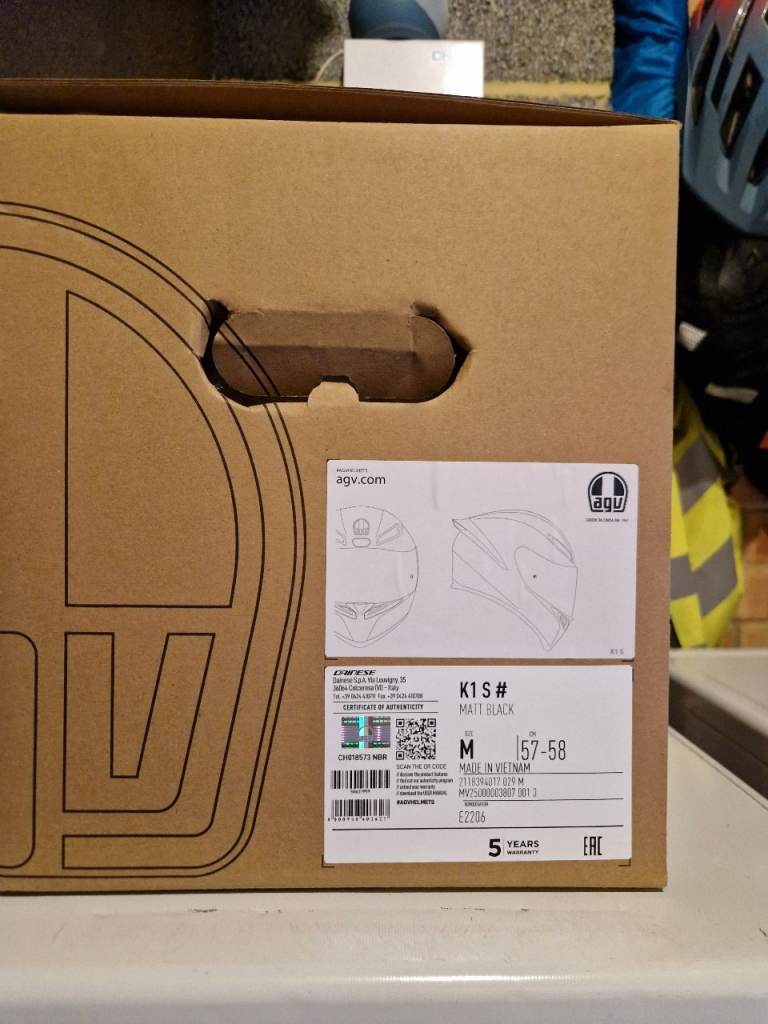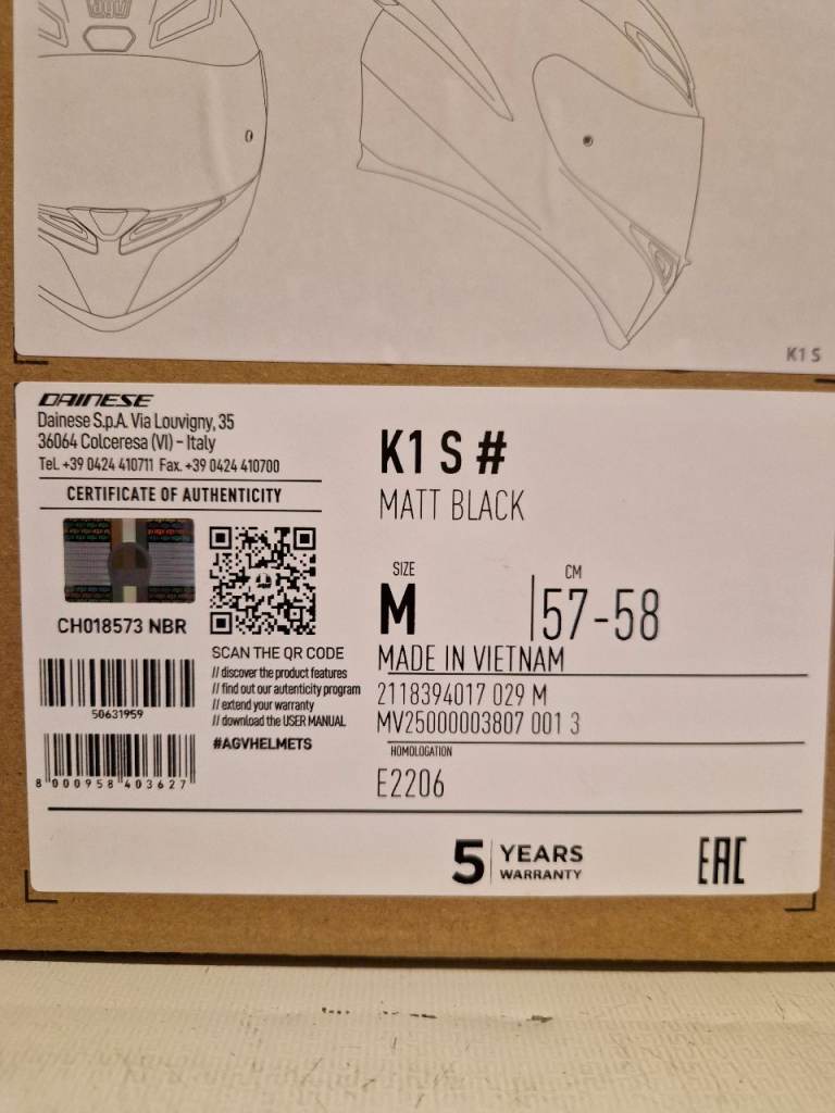 Also included is a helmet bag and original clear visor. Size medium. Box has QR code to show it's a genuine AGV product.