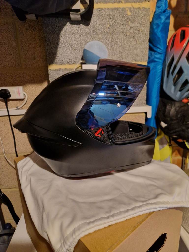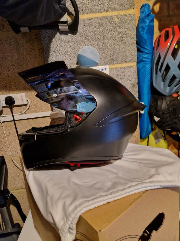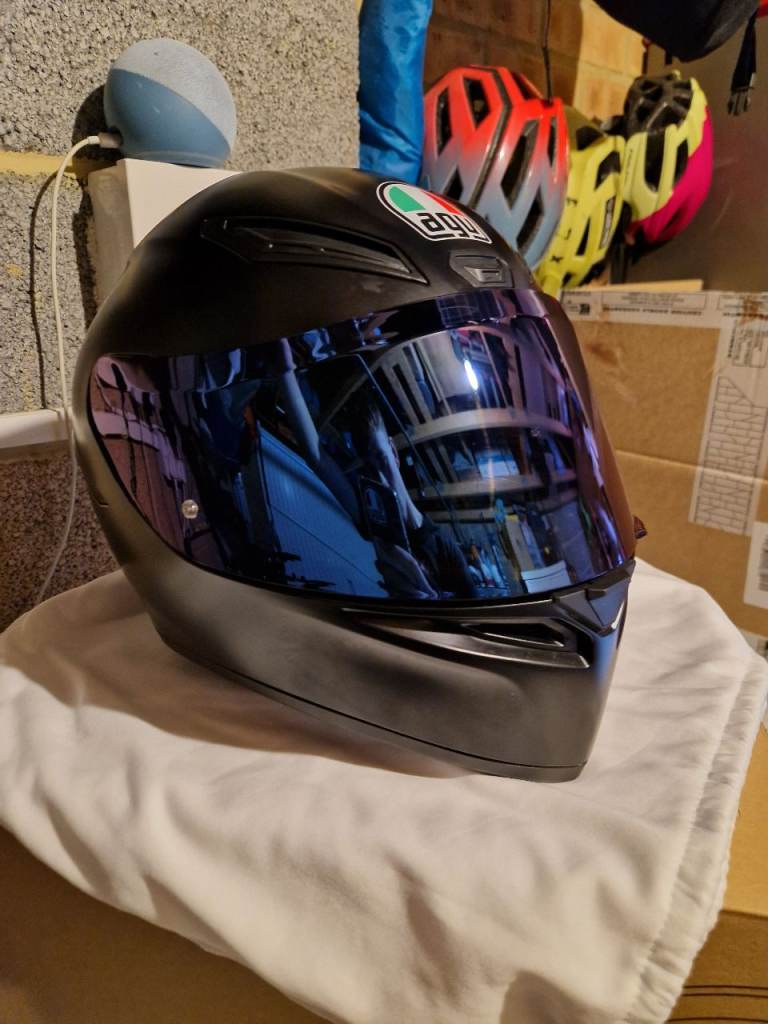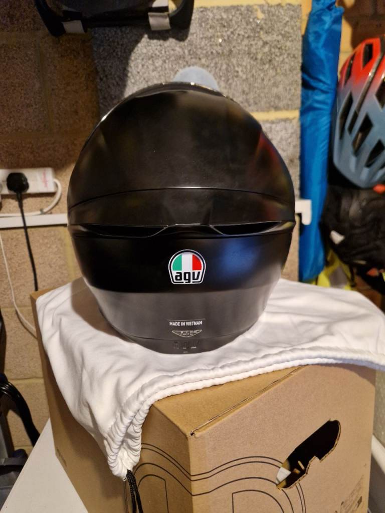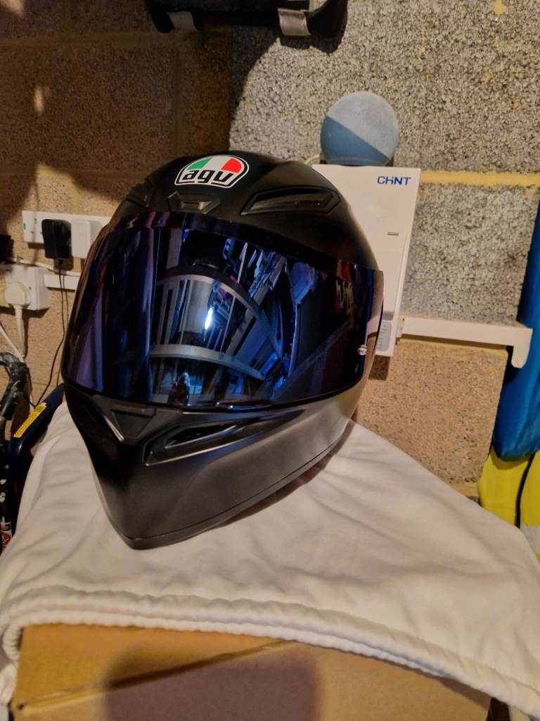 Also included is a helmet bag and original clear visor. Size medium. Box has QR code to show it's a genuine AGV product.