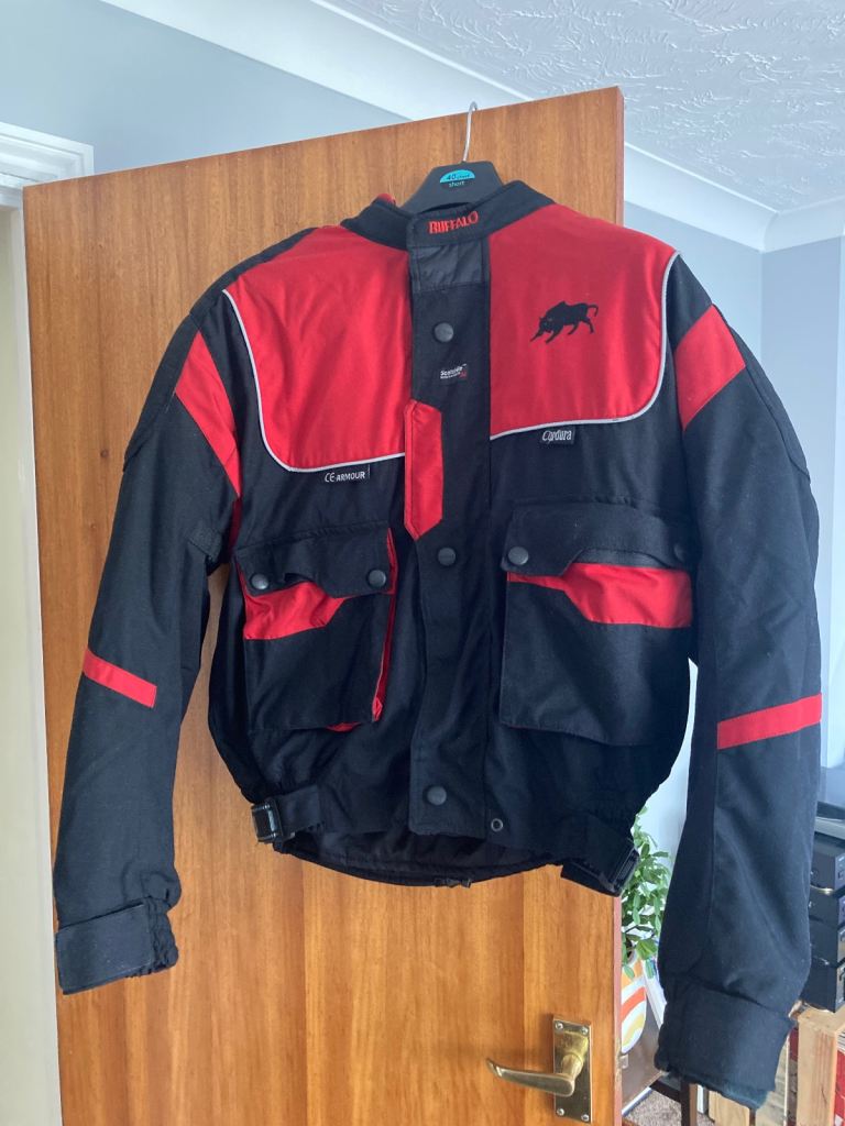 Buffalo motorcycle textile jacket, size medium.red and black, good condition.