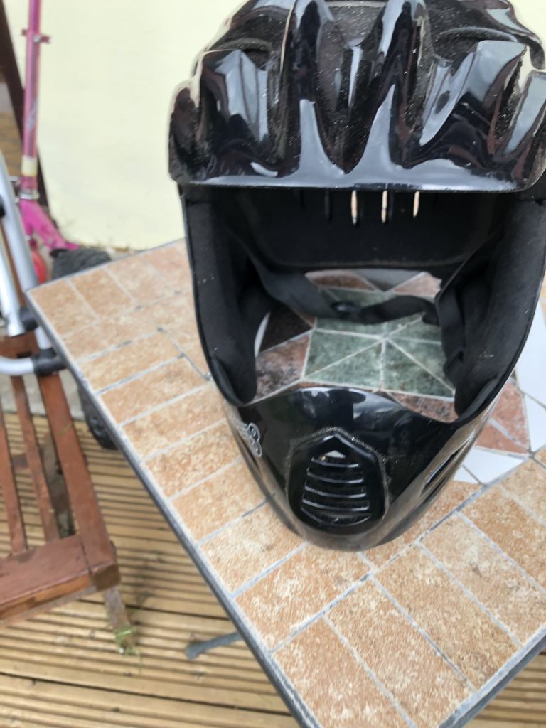 Cycling Helmet (small). Full face with peak. Used but in good condition.