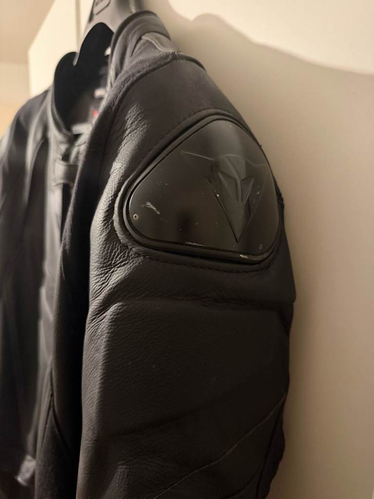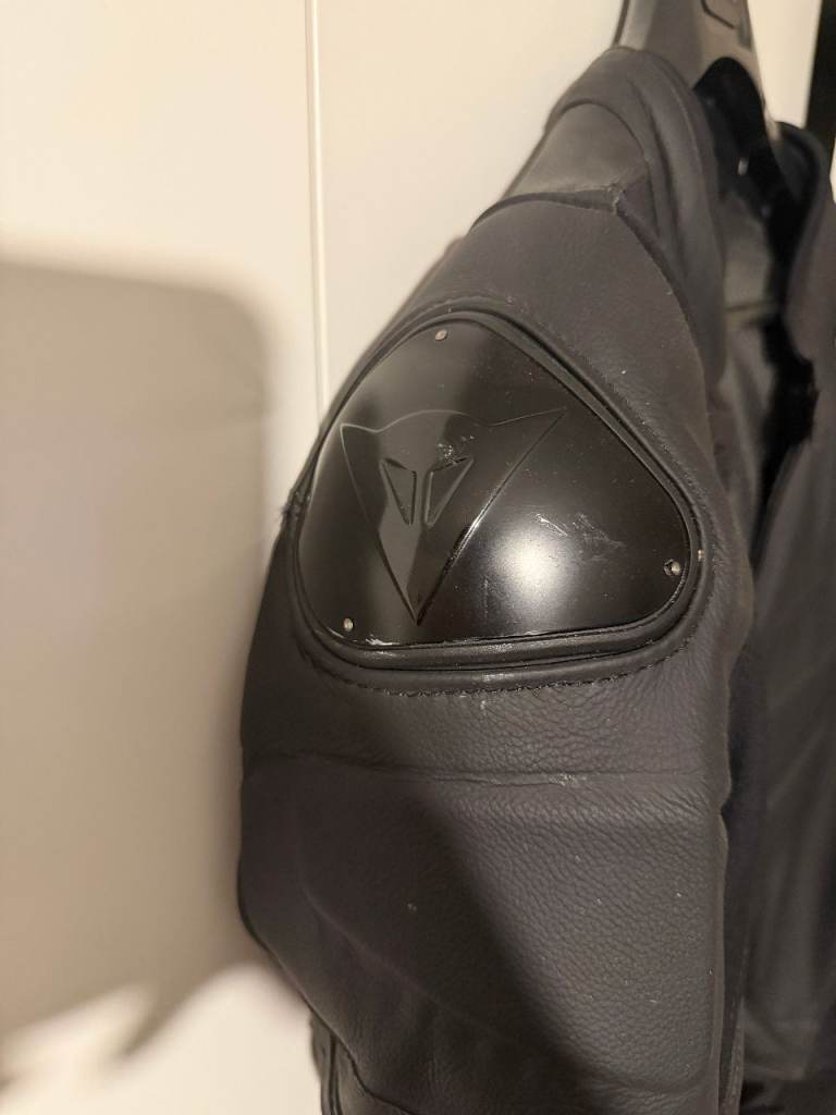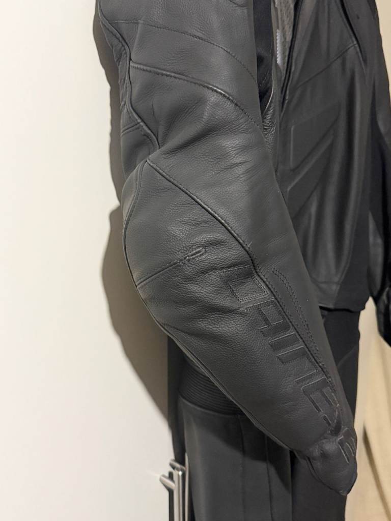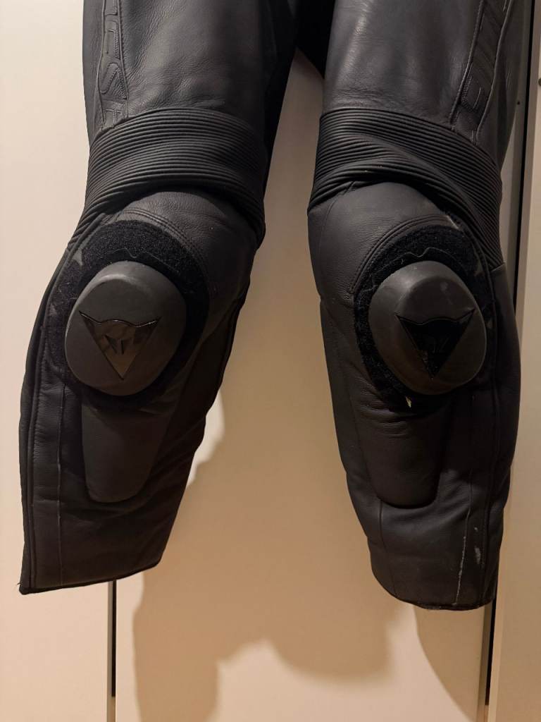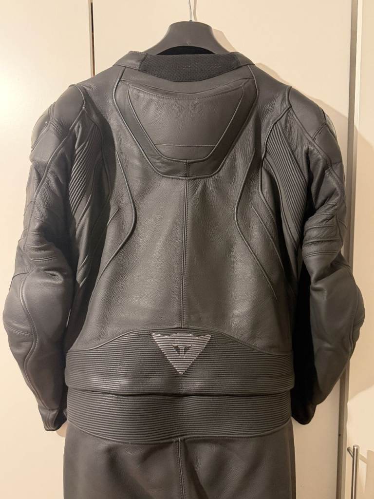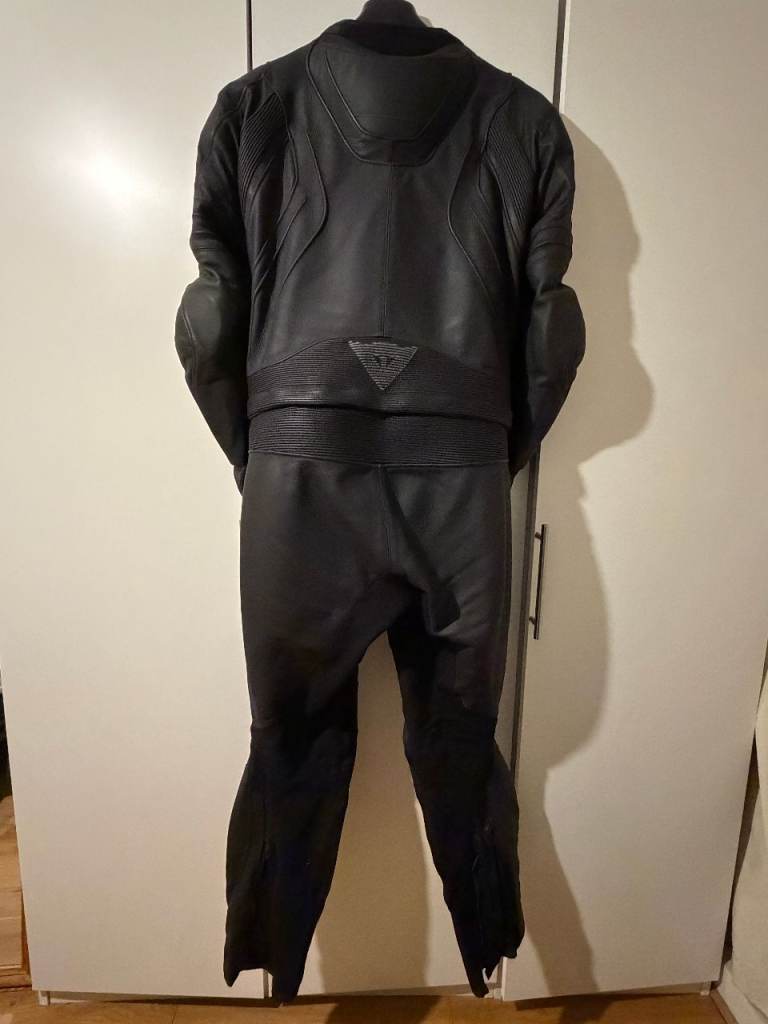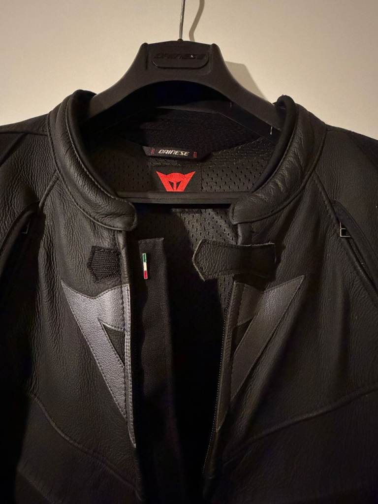 I bought this suit new 1.5 years ago. It is a fantastic, premium suit with the signature Dainese protection and style. The all-black "stealth" look goes with any bike.