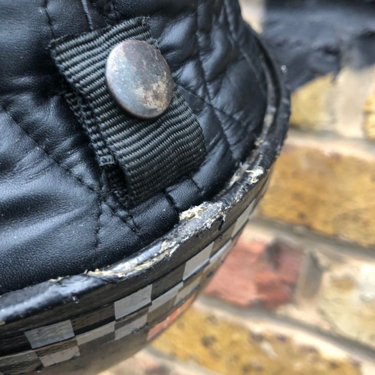 Posting for 7+ yearsDavida pudding basin motorcycle helmet vintage classic style cork lined Leather sides cafe racer