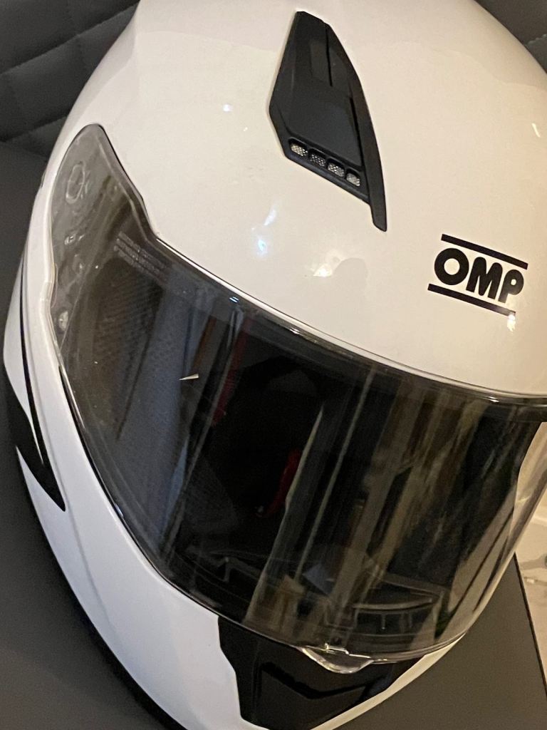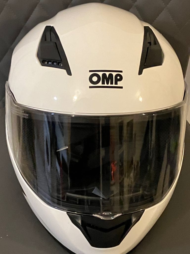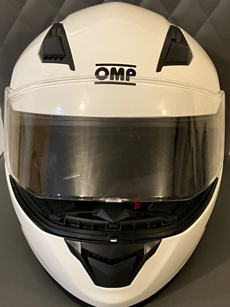 A brilliant full size crash helmet in excellent condition never used as new comes with flip up visor branded OMP racing model.