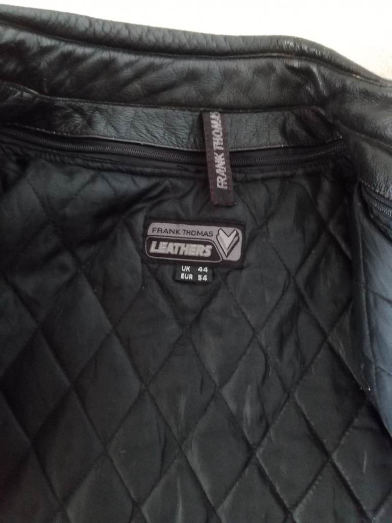 Frank Thomas Leather Armoured Motorcycle Jacket size UK44 with removable lining. Good condition