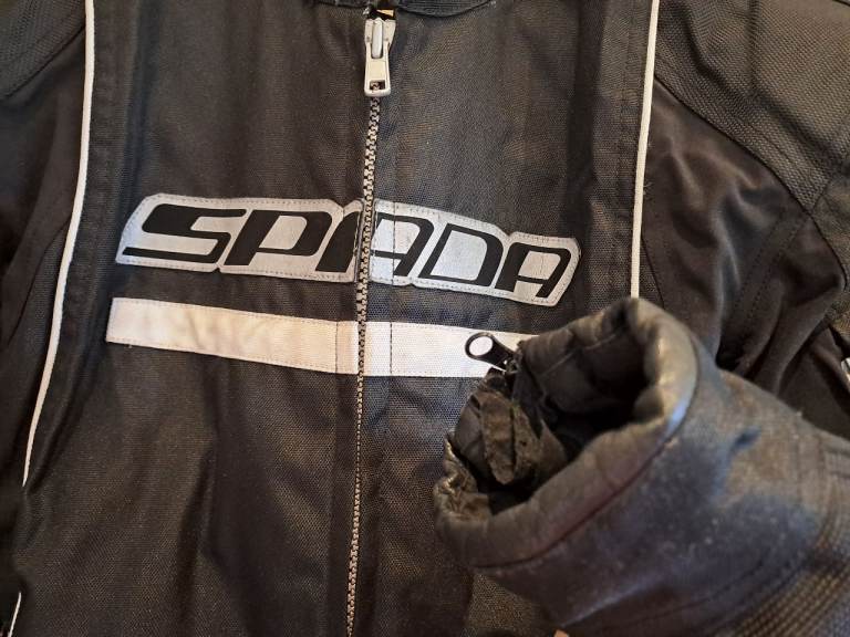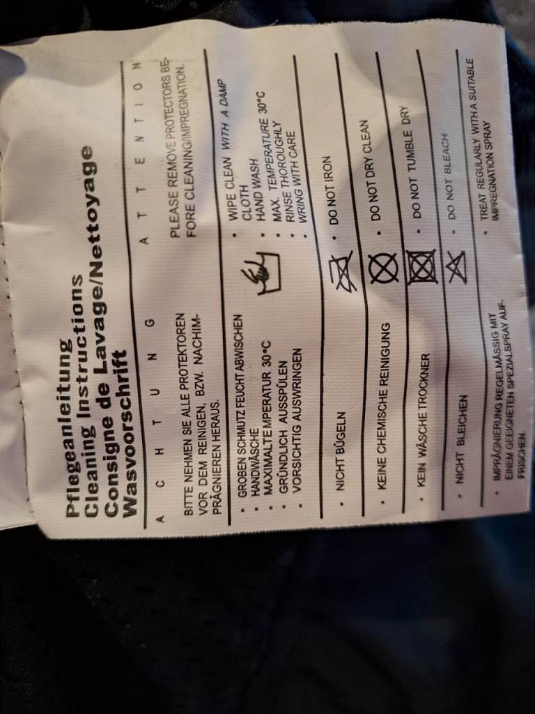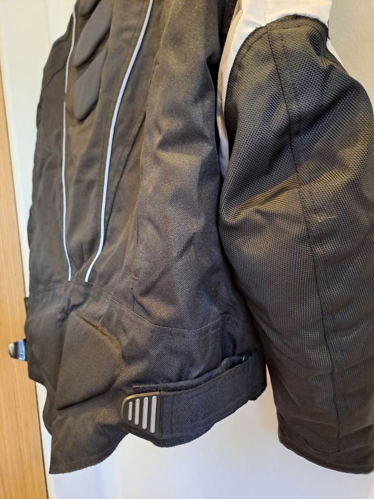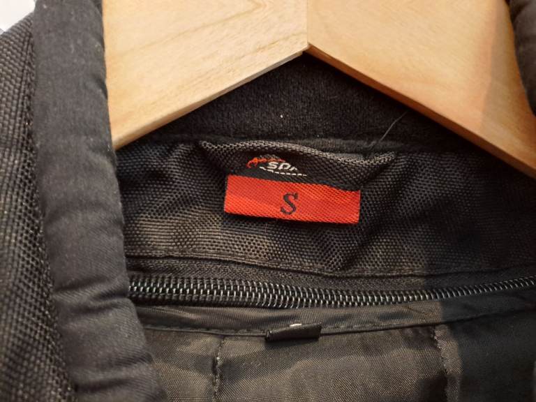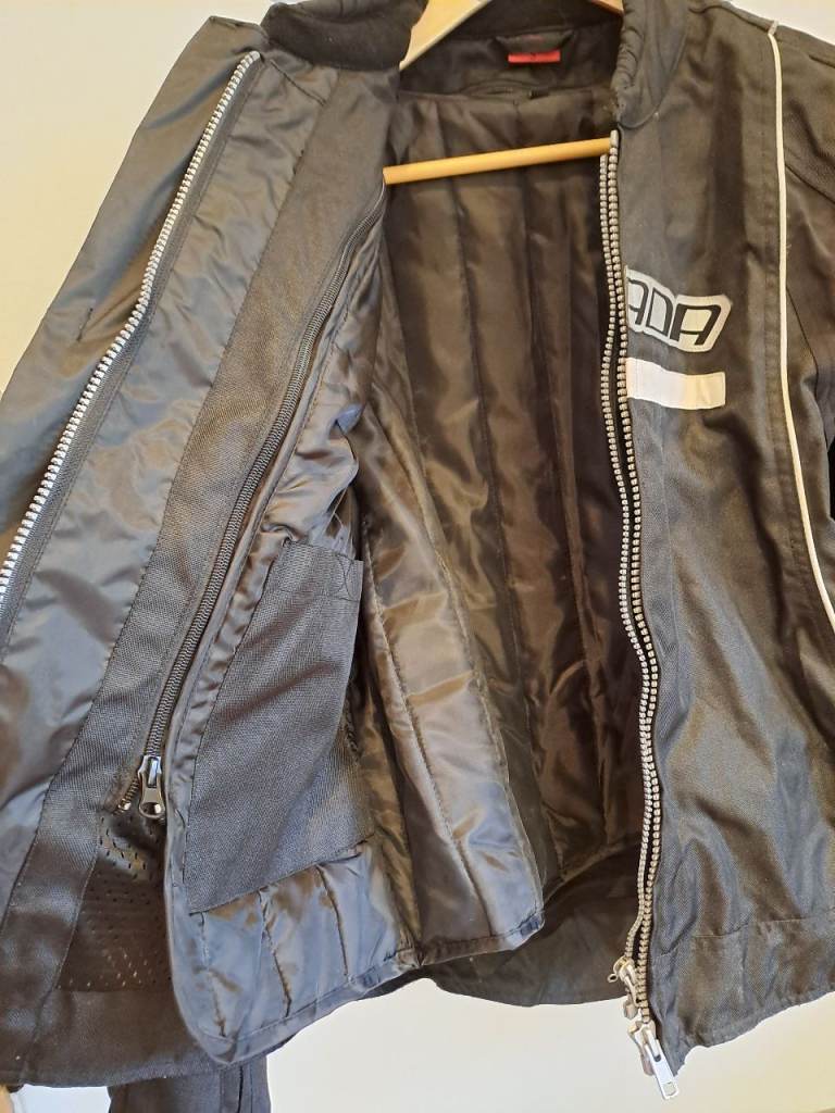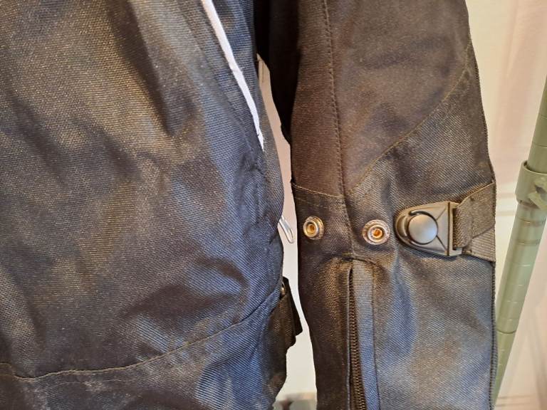 Fully armoured jacket size S. Leather trim on the cuffs. Removable inner lining. Zips for airflow on arms and back. Very good used condition.