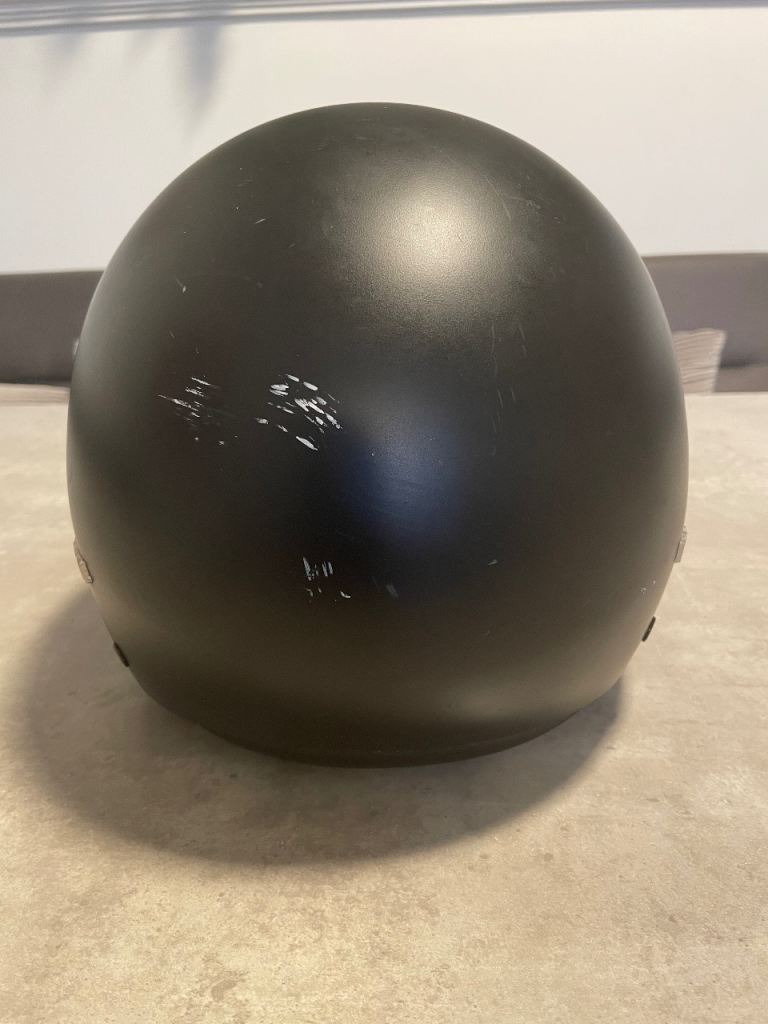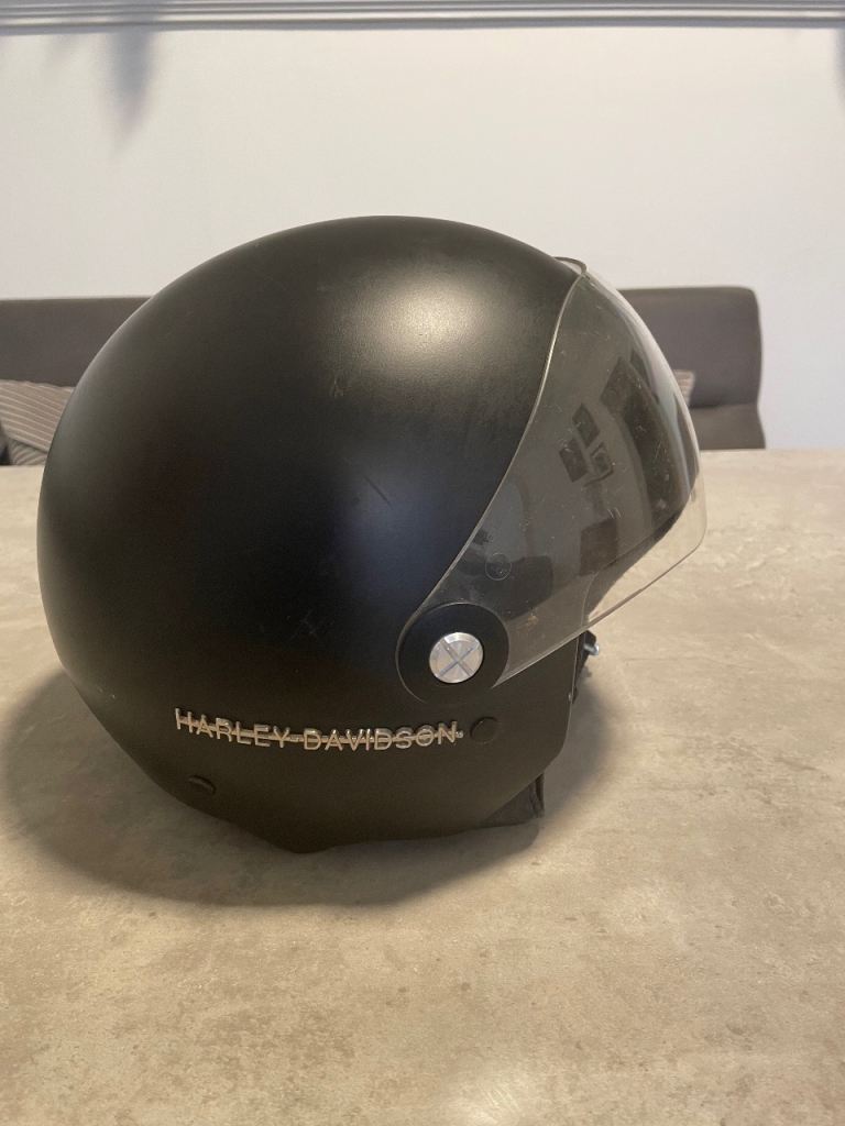 Gently used Original Harley Davidson open faced black helmet with visor. size Large. Very slight storage grazing to the back of helmet as shown in last picture. Never been in an accident good condition
