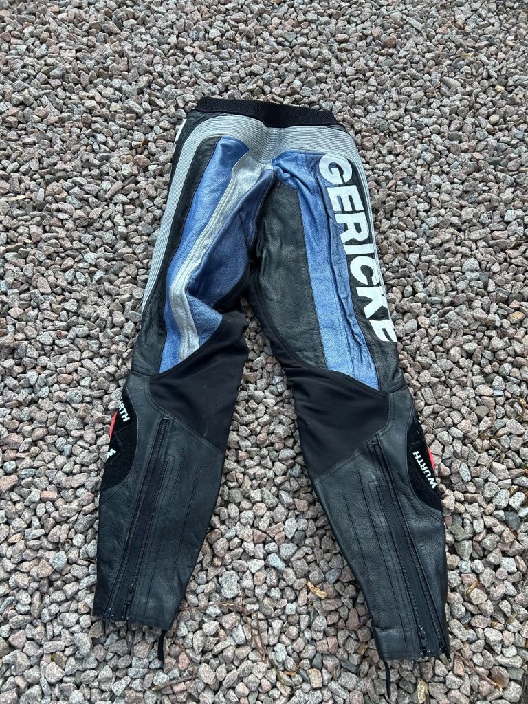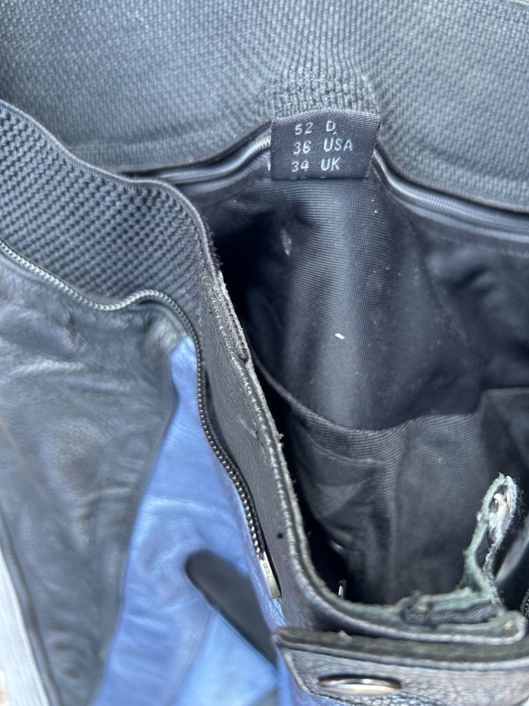 Jacket Uk size 42 and Trousers size 34. Racing Aerodynamic hump missing