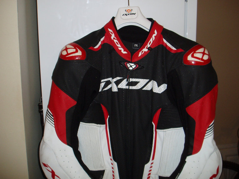 STUNNING AND VERY COMFORTABLE FRENCH IXON VORTEX 2, ONE PIECE ROAD / RACE LEATHER SUIT, IN THE HARD TO GET BLACK / WHITE / RED COLOURS, SIZE 2XL (46). ONLY WORN A FEW TIMES, SO SUIT IS AS NEW WITH ORIGINAL TAGS AND PACKAGING, ANY QUESTIONS, PLEASE ASK......