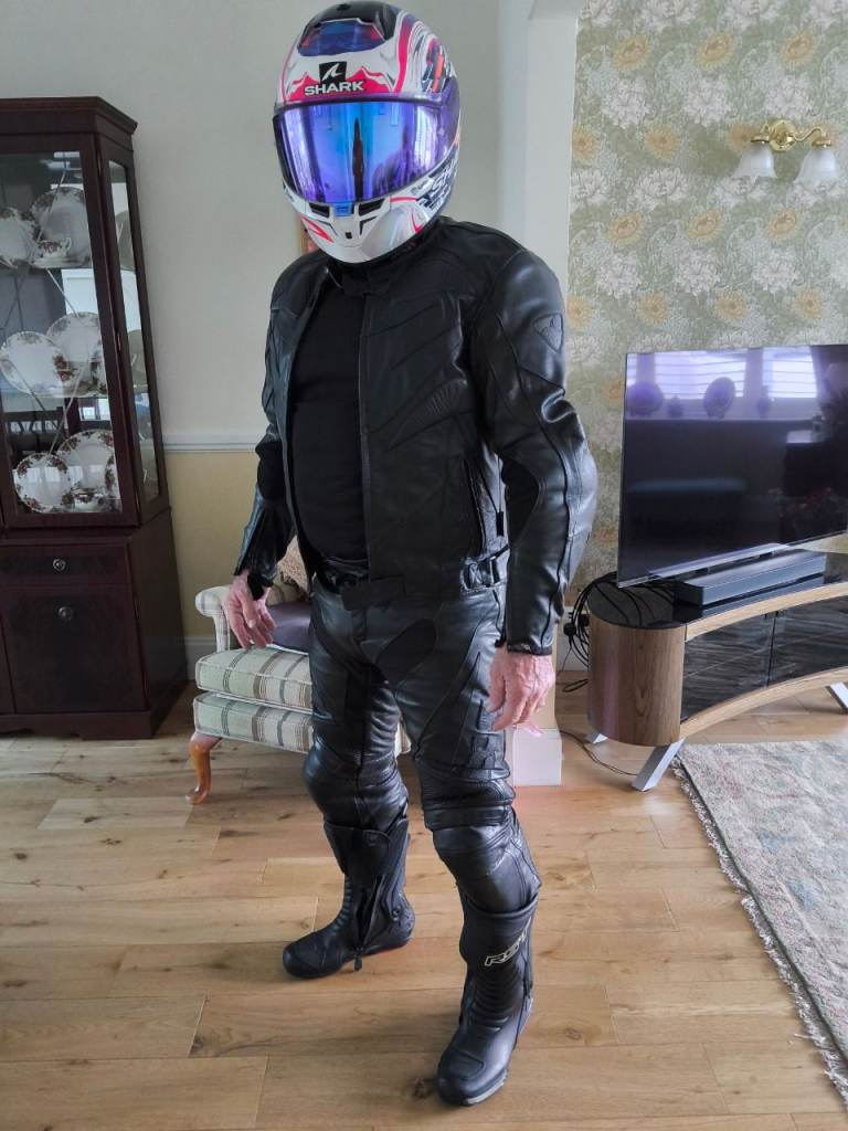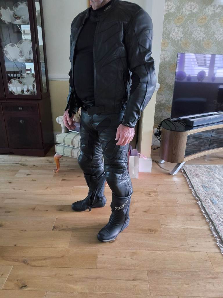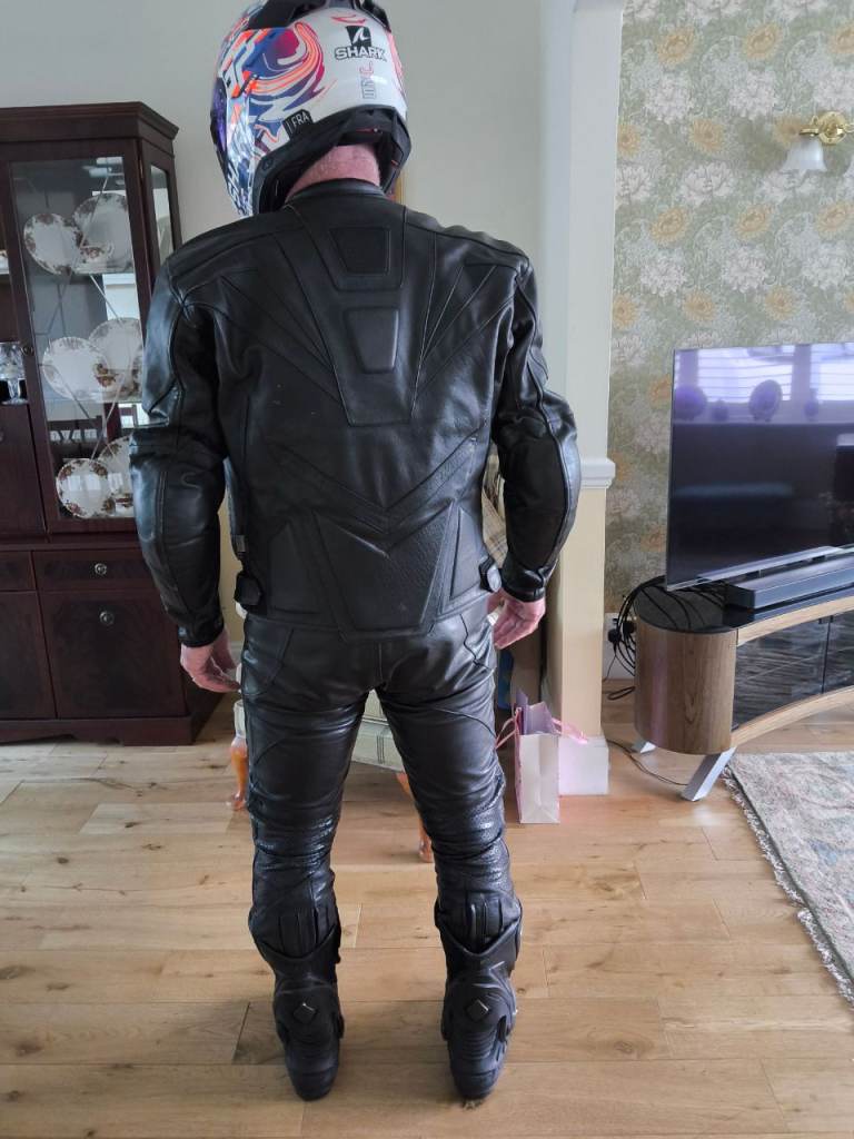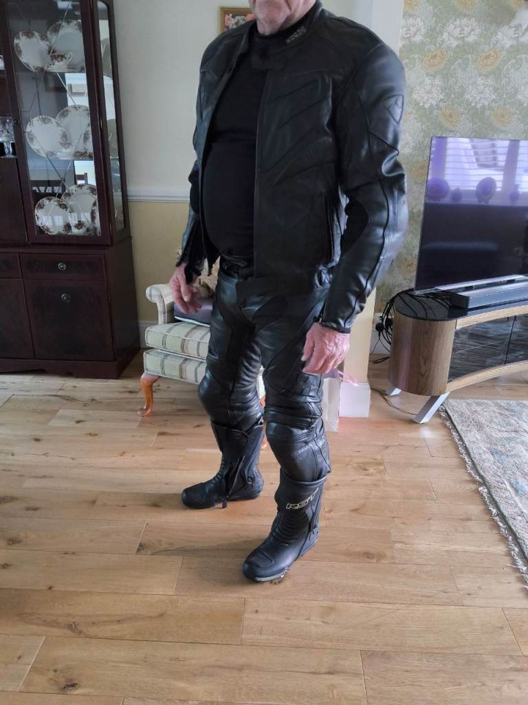 Ixs two piece leather motorbike suite medium size 48 and trousers around 32 waisted 30 leg