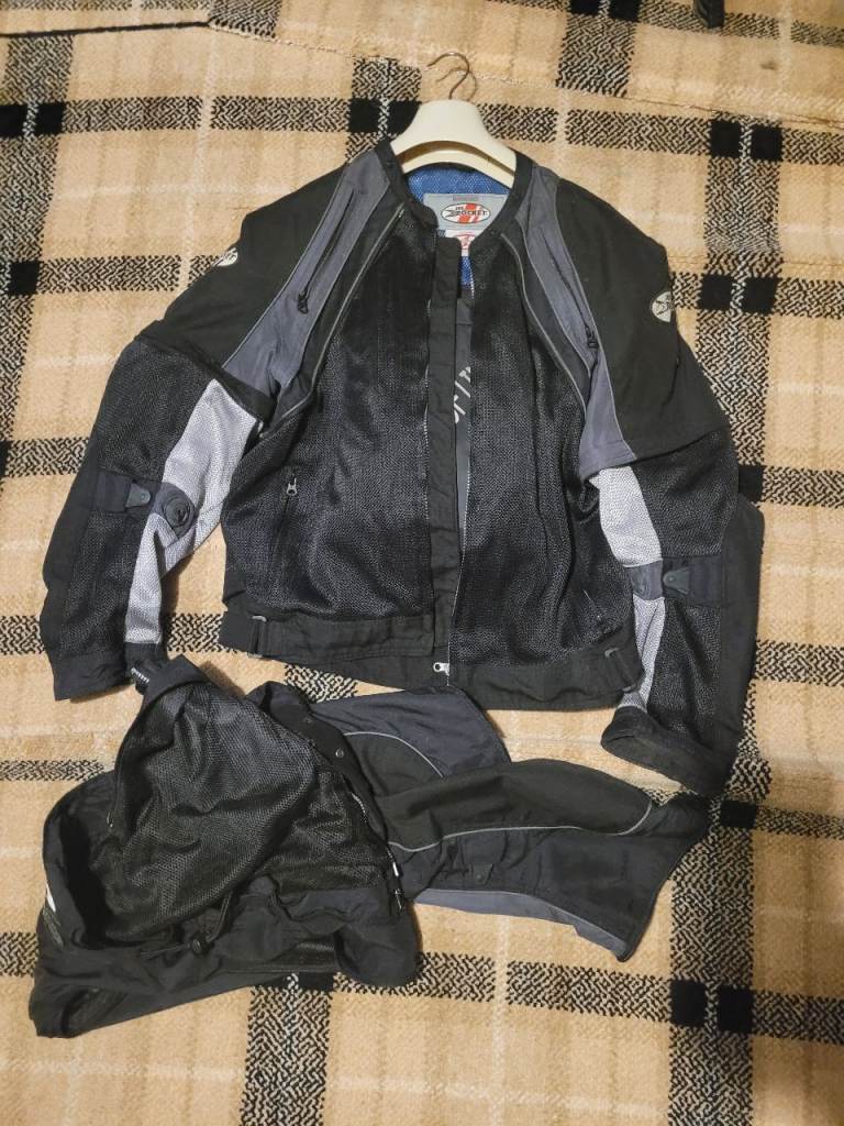 Joe Rocket Black and grey textile motorcycle jacket. Fully CE armoured, and has a detachable waterproof inner, plus outer layer zips off to make jacket into a mesh jacket for hot weather use. Size UK 42. Cash on collection please.