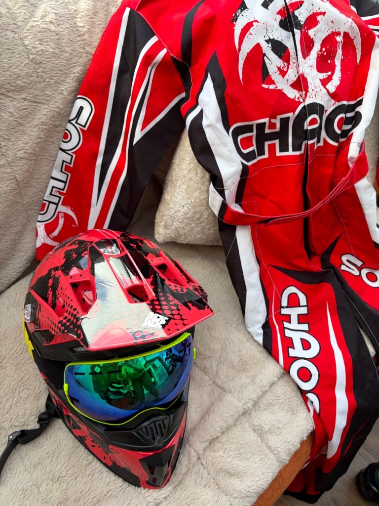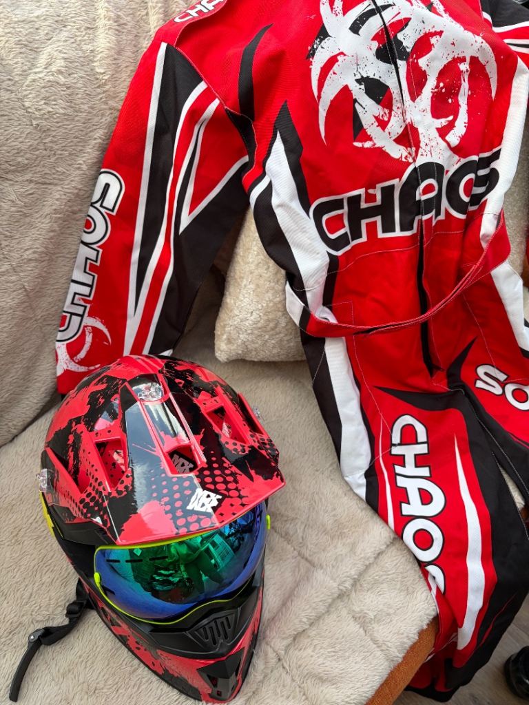 Posting for 9+ yearsJunior dirt bike suit, helmet