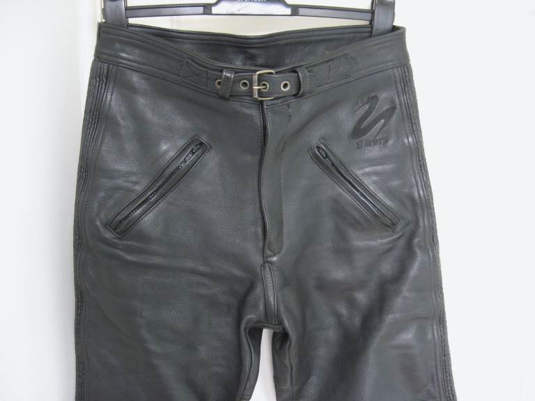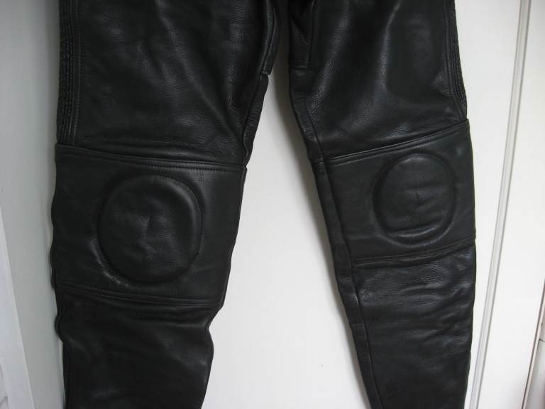 Posting for 5+ yearsJUST BIKERS real leather motorbike trousers W32 L32 black motorcycle trousers, vgc