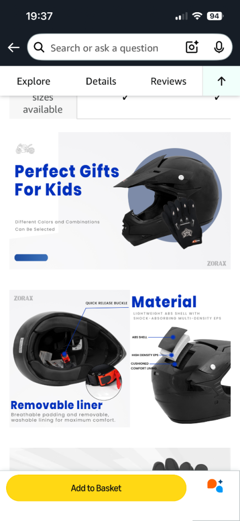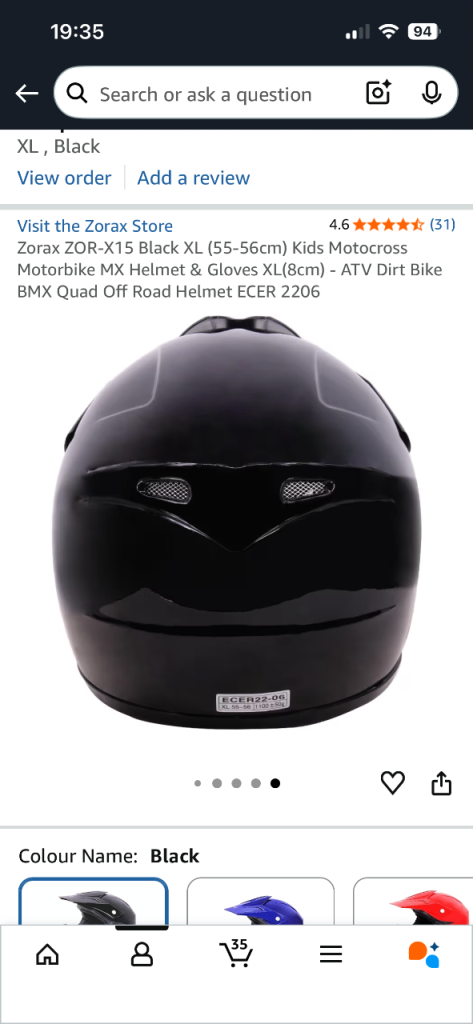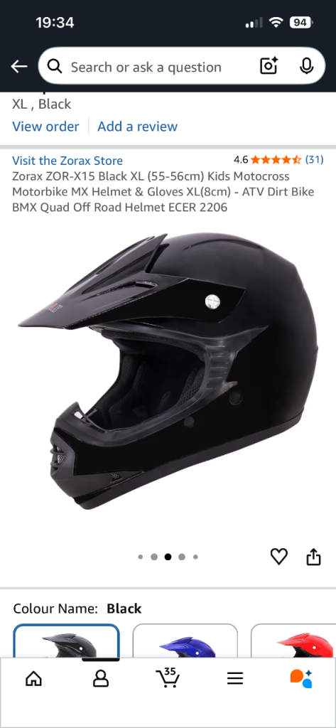 BNIB bought the wrong type of helmet for Xmas son doesn’t like it. Bought for £39.99 just before Xmas no gloves