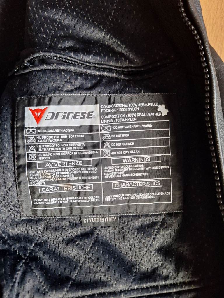 This is a XL ladies dainese jacket size euro 60. Good condition armour in elbows and shoulders. Very nice jacket typical dainese quality.