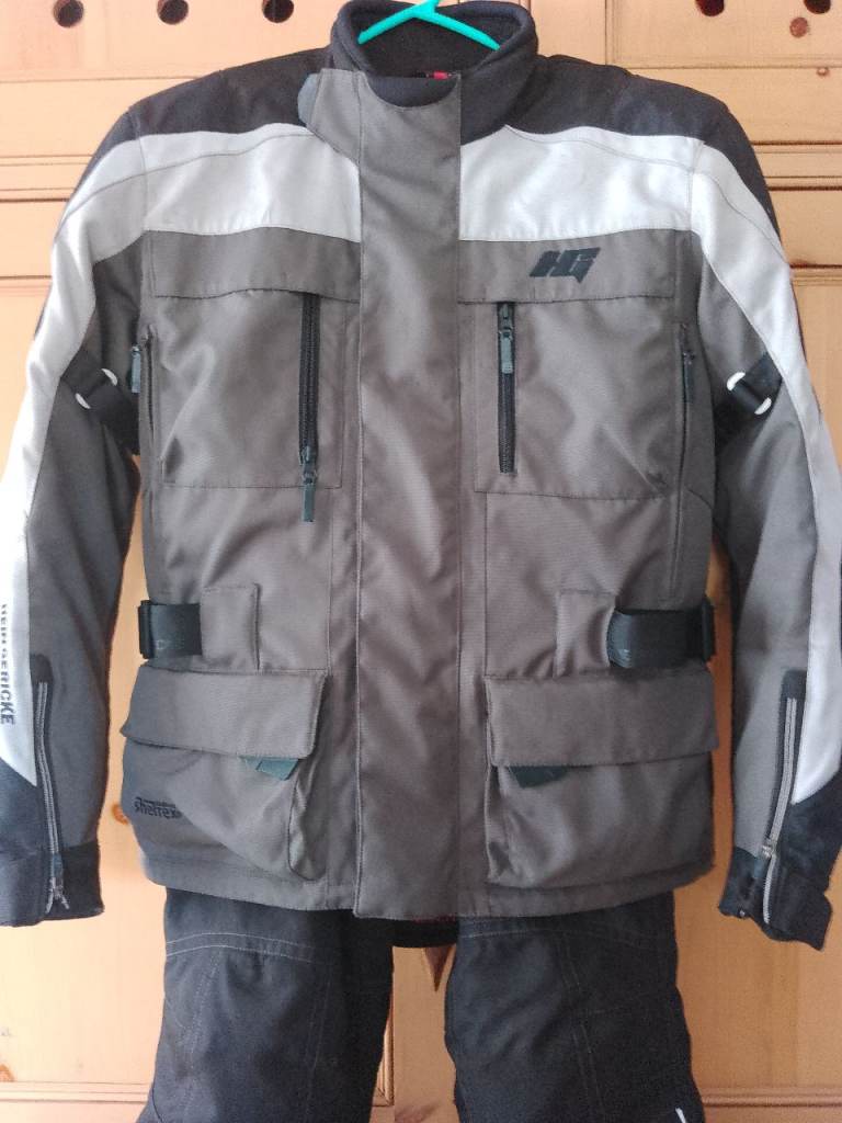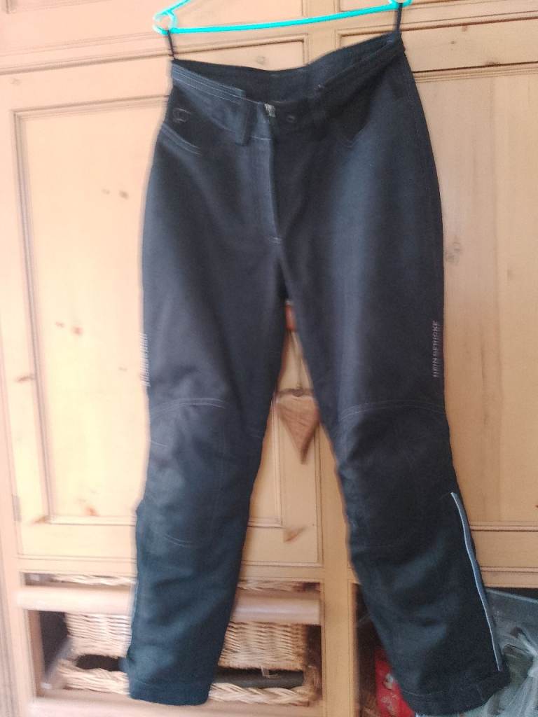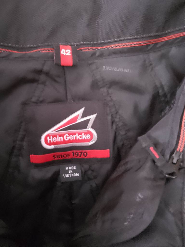 Hein Gericke ladies jacket and trousers. They are in very good condition, hardly worn. They have the inner thermal shells and armour. The jacket is medium, its a size 14-16 and measures 46 inches across the chest. The trousers are sized at 42 which is a size 14. Motorcycle clothes sizes come up slightly bigger to accommodate armour and layers.