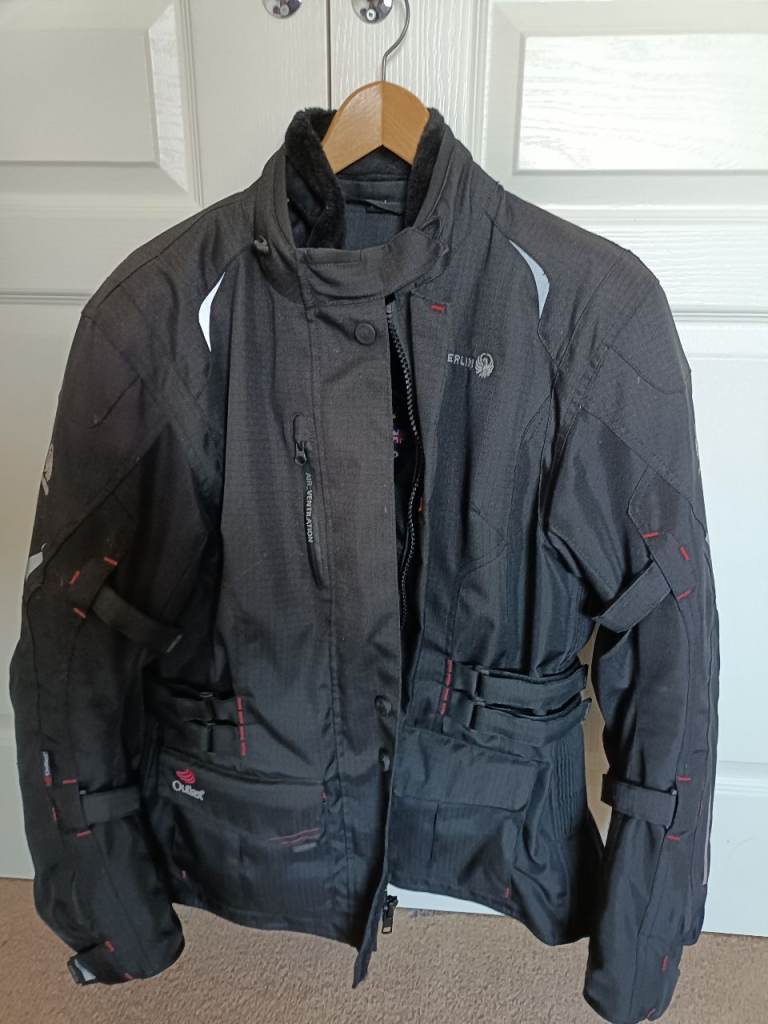 Merlin Ladies Black Motorcycle Jacket. Size XXL(16/18), with soft armour in shoulders, elbows and back. Removable quilted liner. Adjustable fit round waist and hips. Hardly worn. Excellent Condition. No need for my bike clothing as given up bikes.