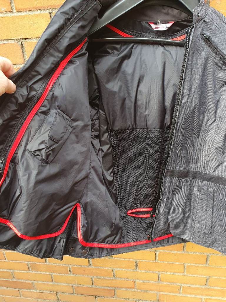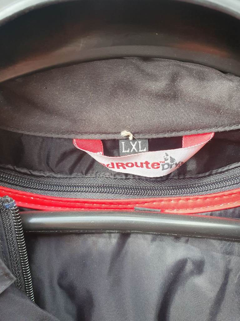 Ladies red route jacket, plenty of storage pockets, vents front an rear, adjustments to arms,wrists an waist.