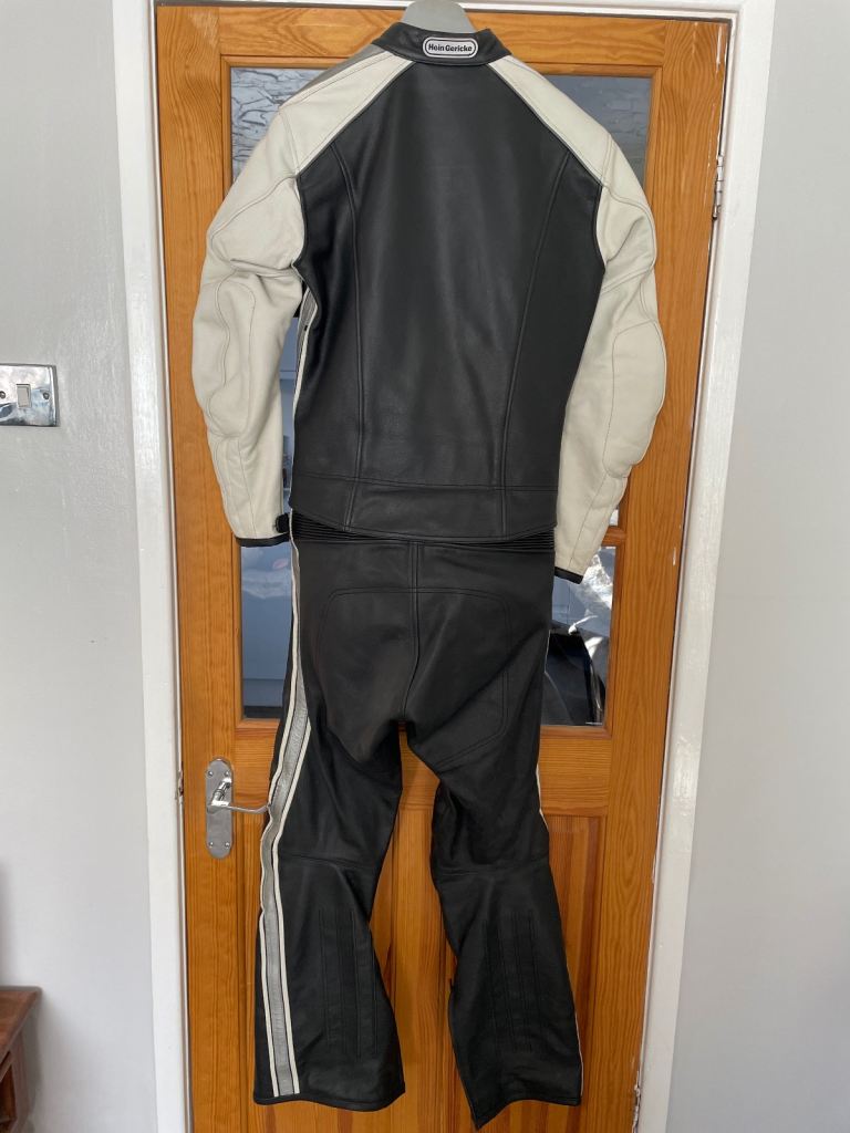 Size 10 woman’s bike leathers. They have only been worn twice & are like new. Black & cream with silver piping. Top quality from Hein Gericke. Selling due to lack of use as my wife will not go on the bikes