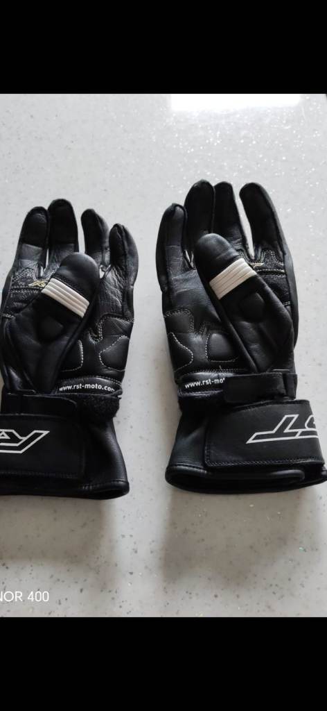 RST mens black leather motorcycle gloves.
