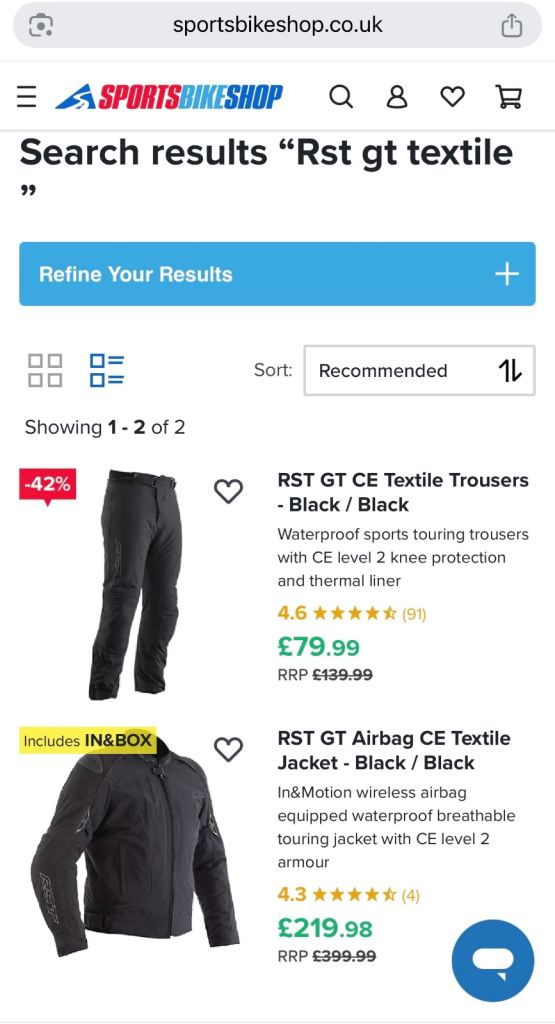 Posting for 7+ yearsMENS WATERPROOF RST GT CE TEXTILE JACKET AND TROUSER