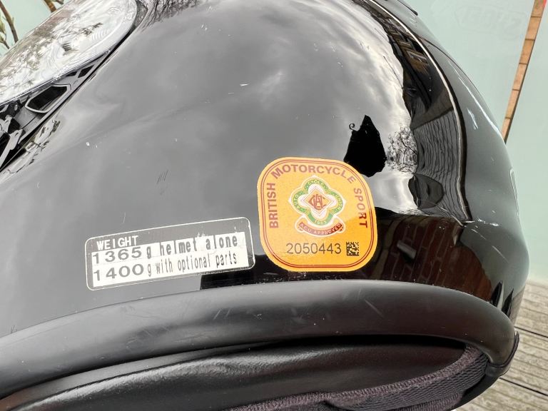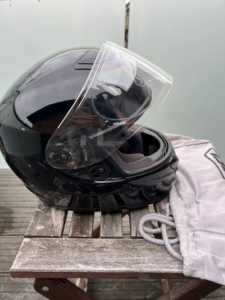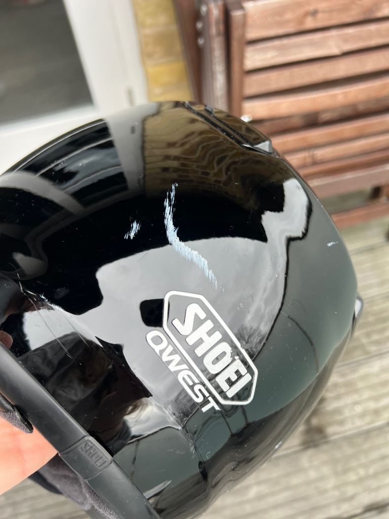 Shiny motorbike helmet. Shows some scratches, especially at the back, but haven’t been used many times. The inside is in great conditions.