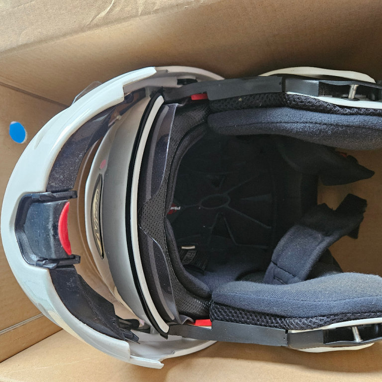 Helmet mint condition no scratches padded pants and jacket with protective padding boots and winter and summer gloves selling the lot