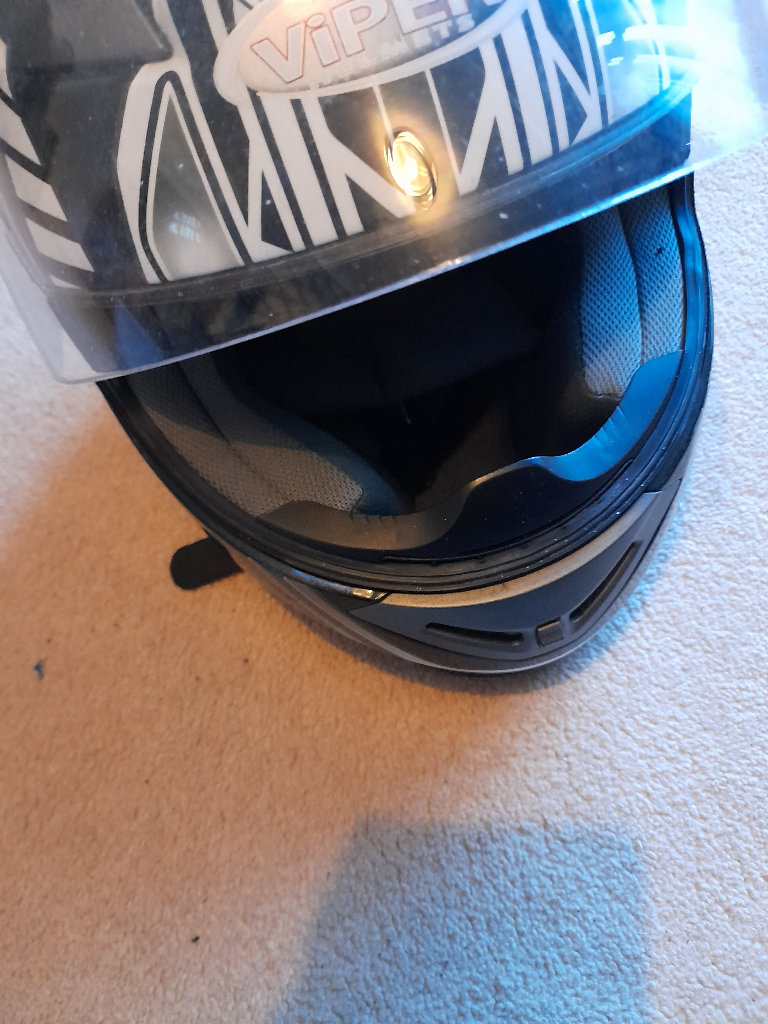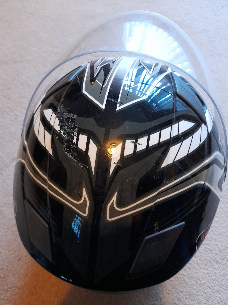 Motorbike helmet for sale in good condition some scuff marks as seen in photos from been stored in top box when traveling never been dropped or been in accident size M asking for 25 ono