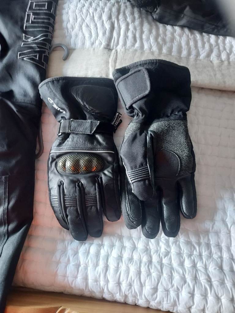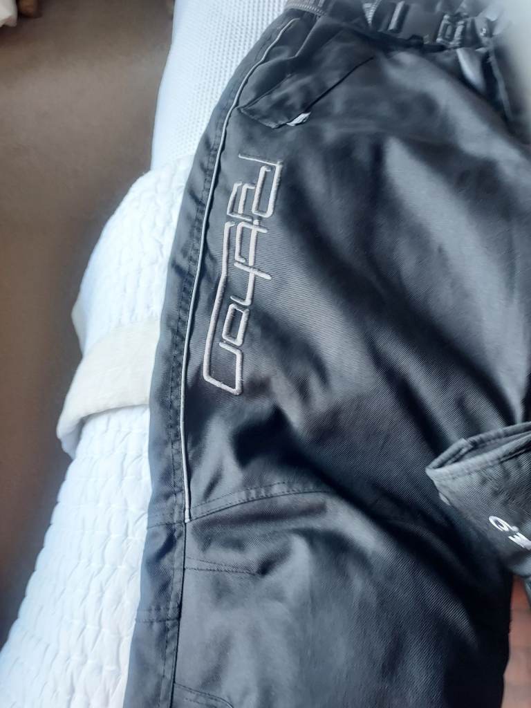 Two pairs of textile motorcycle trousers, akito and crane, both size large, both have removable thermal inserts, good condition, I think they have only been used a couple of times as I bought rst ones,also included is a pair of extra large crane gloves, they to are in good condition ,Frank Thomas helmet, medium, good condition, pinlock fitted, drop down tinted visor, clear visor has a scratch but doesn't obscure your vision, £70 for everything, ideal for someone starting out on the motorbike journey