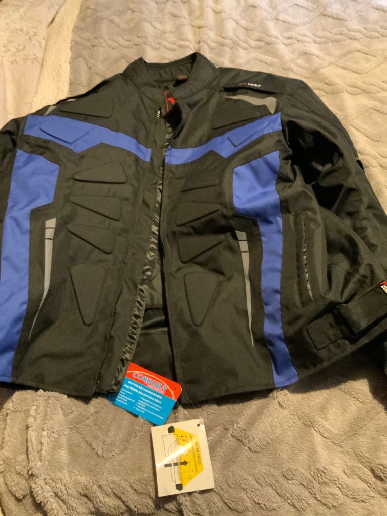 Brand new motorcycle boots never been worn size 10 motorcycle jacket brand new size xxL new helmet still in box