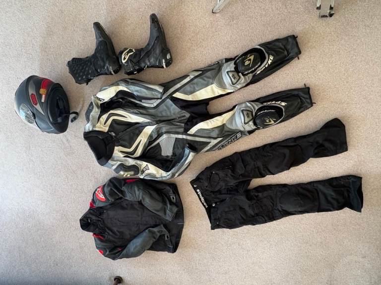 Motorcycle jacket and trousers. Jacket is medium. Trousers small. Collection only.