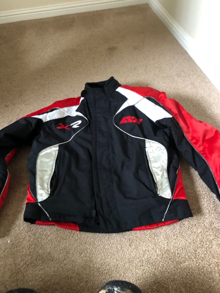 Ixs motorcycling racing jacket in red black & white in great condition size large to Xl depending on build