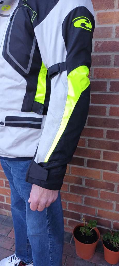 Good quality motorcycle jacket for sale, high visibily, size XL (44" chest). Good protection. Only worn six or seven times.