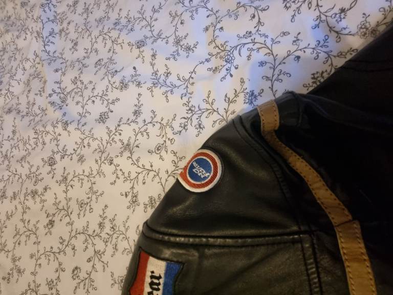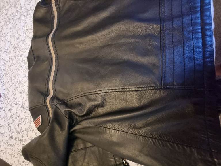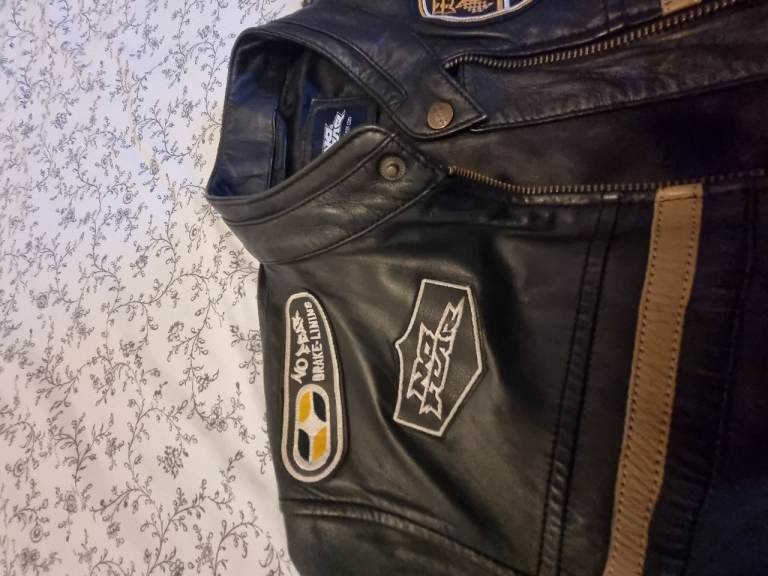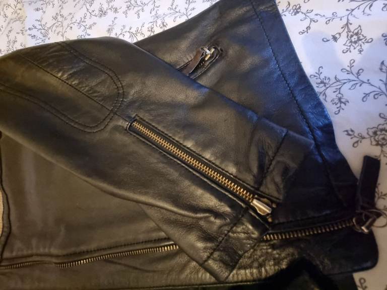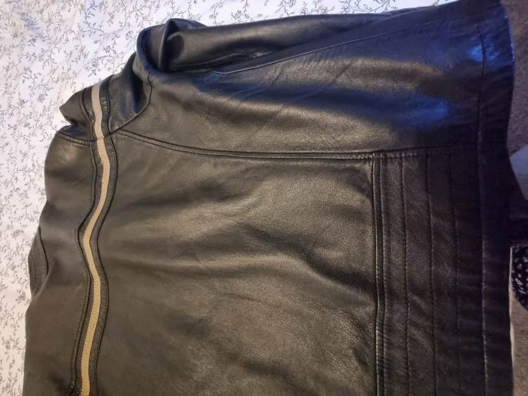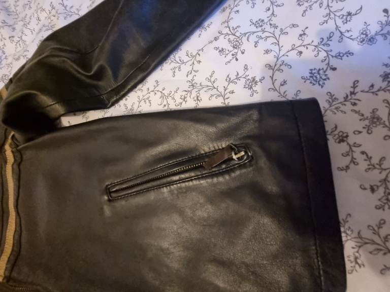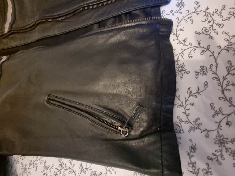 Lovely no fear soft 100%"leather motorcycle jacket in very good condition size medium zip up front zips on the side of arms pockets inside jacket