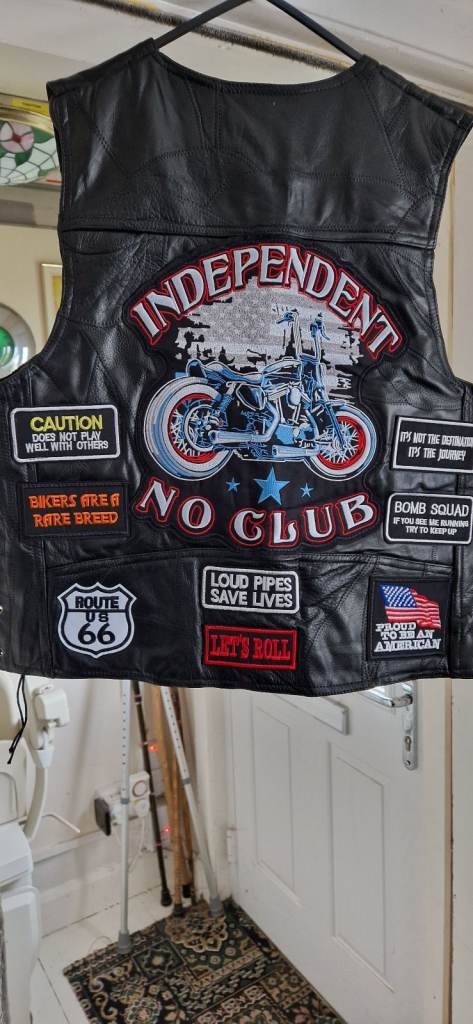 new never worn biker pu leather biker vest with patches