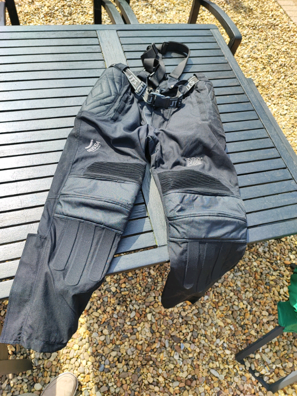 Size XL, black textile motorbike trousers with a zip in thermal liner, currently fitted.