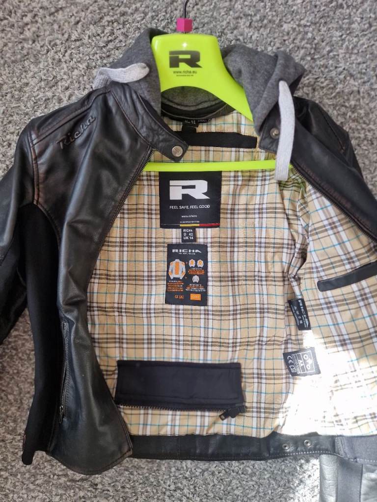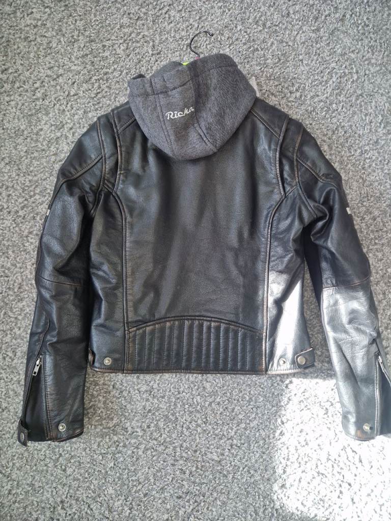 Ladies Richa genuine buffalo leather jacket. In perfect condition worn once from new. Cost over £300 pounds purchased new. Detachable zip on hoodie. Sizes shown in pictures.