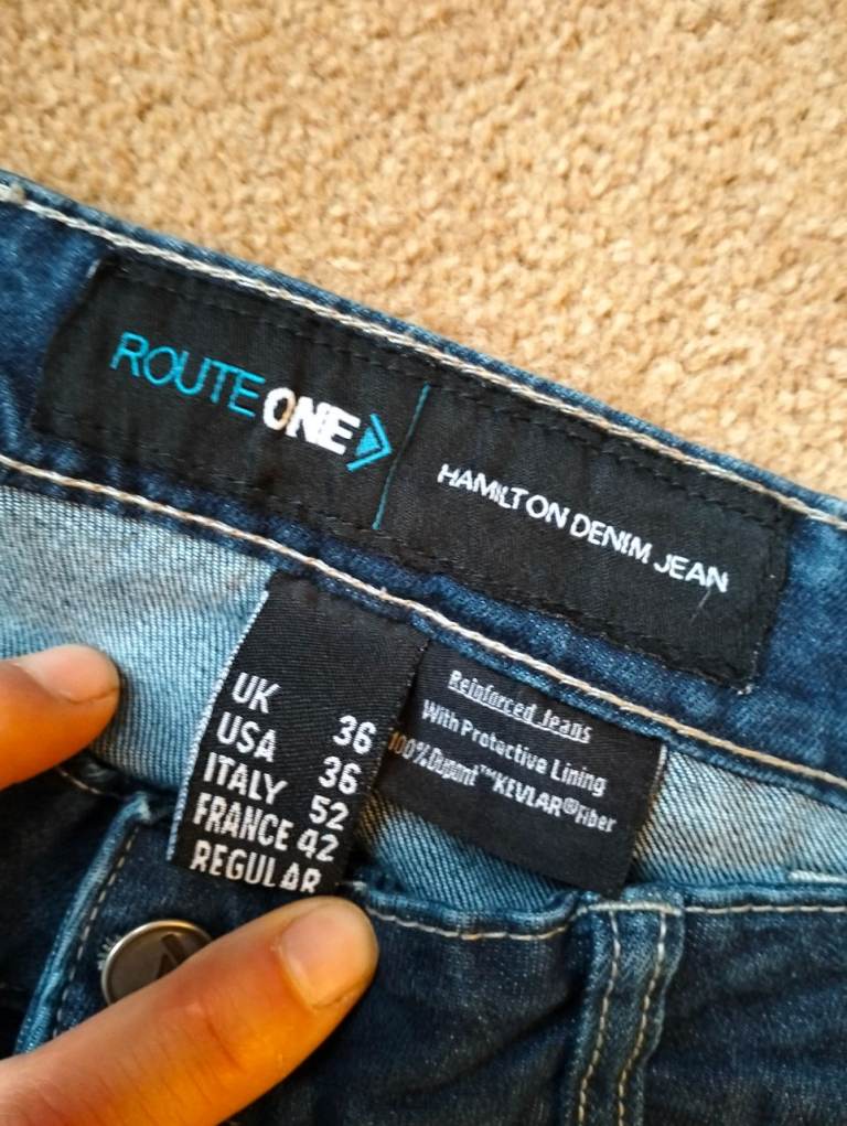 Posting for 4+ yearsRoute One Hamilton mens CE motorcycle jeans Jeans Blue 36" W 32"Leg Regular
