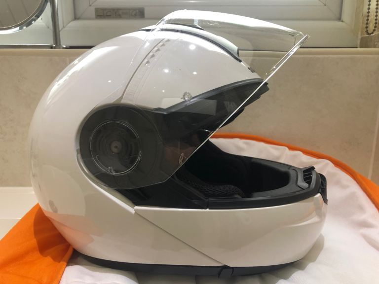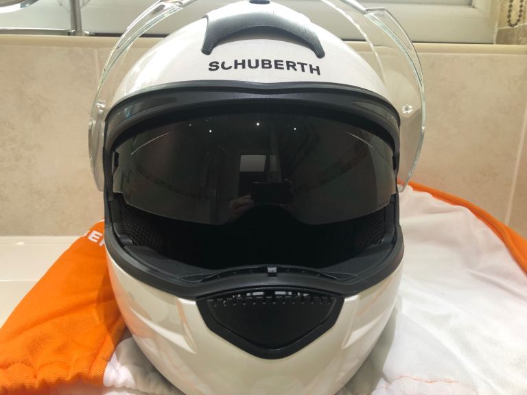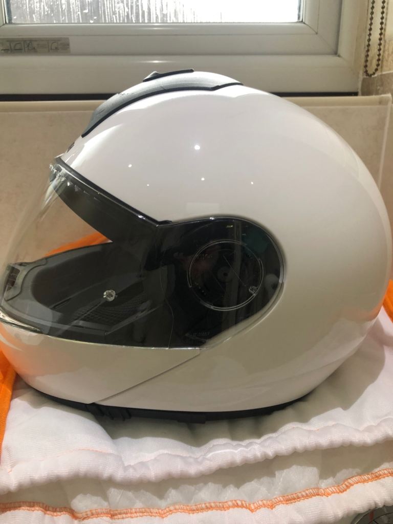 Schuberth C3 Basic Front Flip Helmet with helmet specific coms. Size - small (55). In full working order. Approximately 4 years old in good all round condition. Light scratches on helmet. This helmet is very light and quiet, only selling as have upgraded to C5. Sell for £150