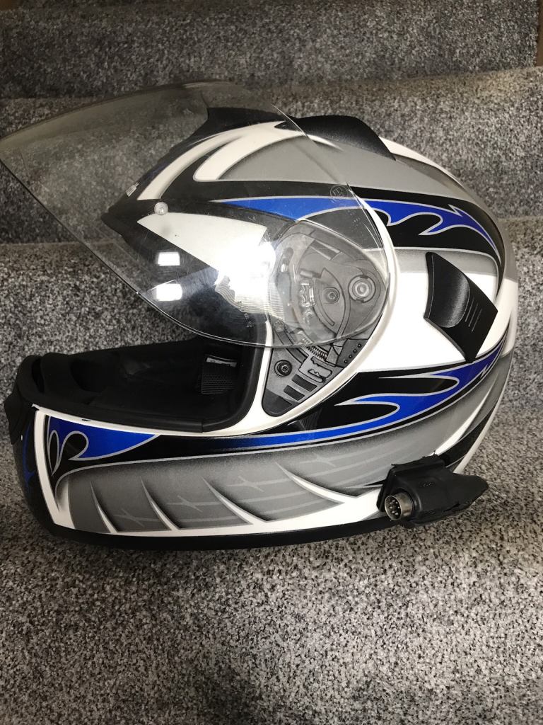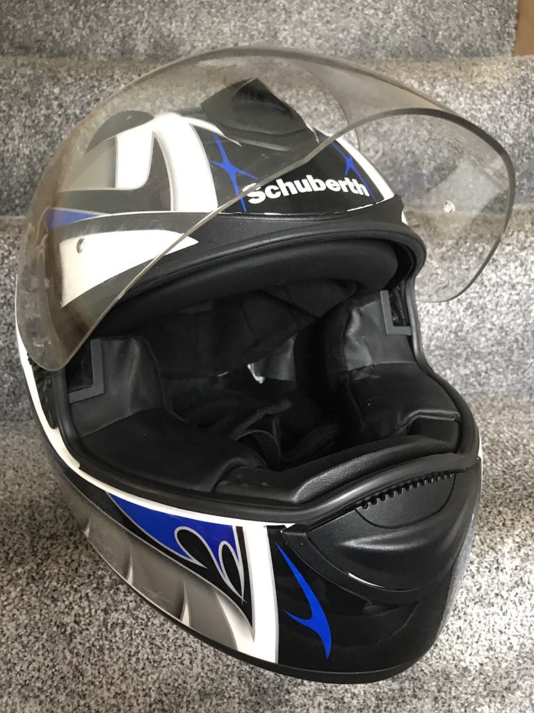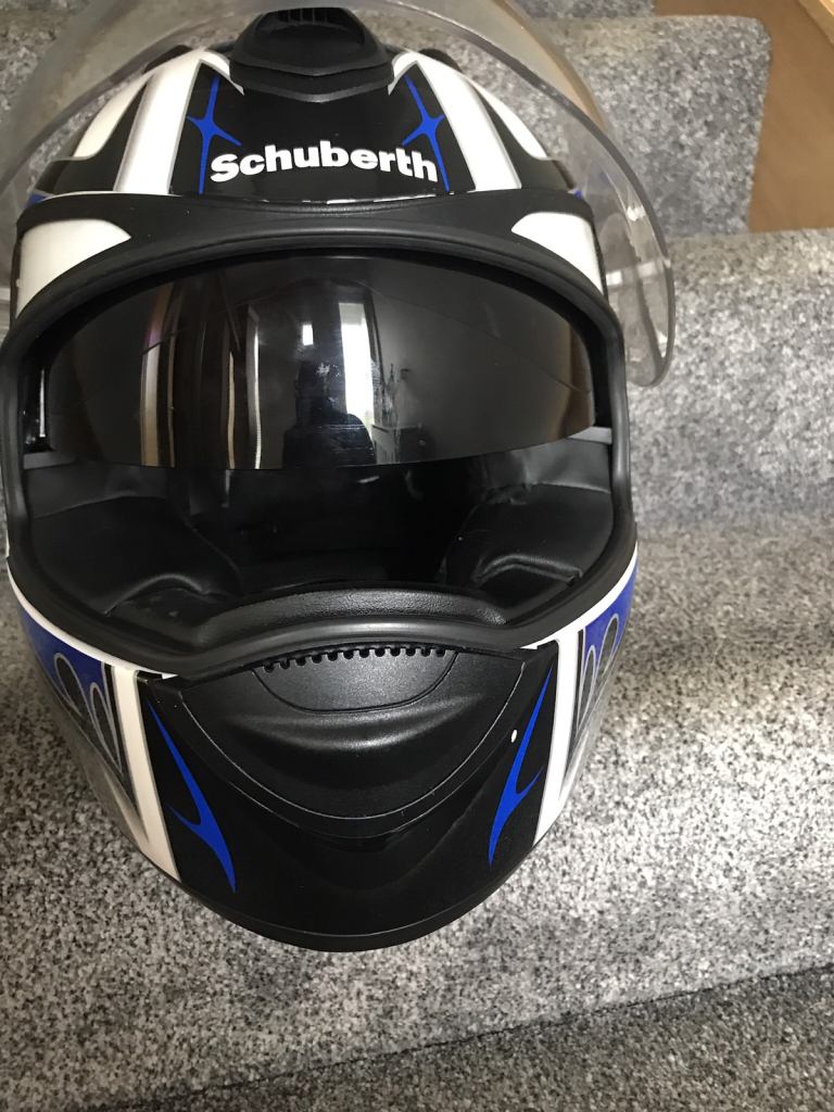 One of the best helmets on the market German made Schuberth,usedcondition but still looks good has intercom connection fitted and mic and speakers not sure if they work as I’ve never used it, Bought it second hand . But all could easily be removed. Internal sun visor flips down from inside helmet .would do for spare or passenger. Best fitting and quietest out there. Good helmet at this price . cost £395 when new . Bargain at this price Size is small/medium. Happy to post at buyers cost