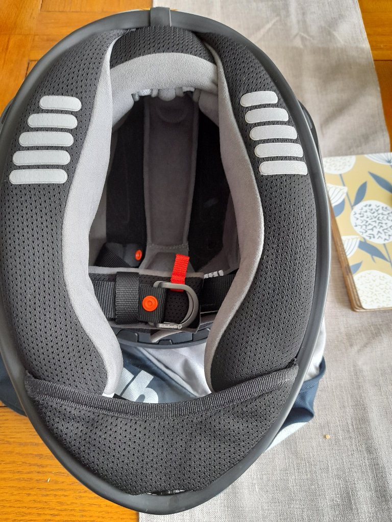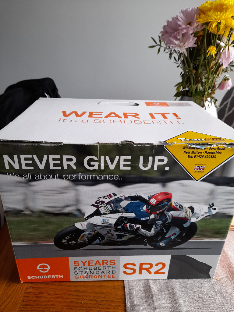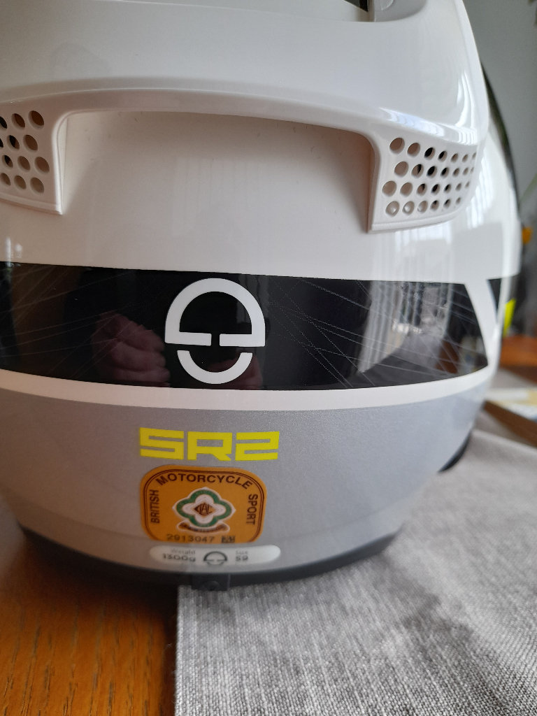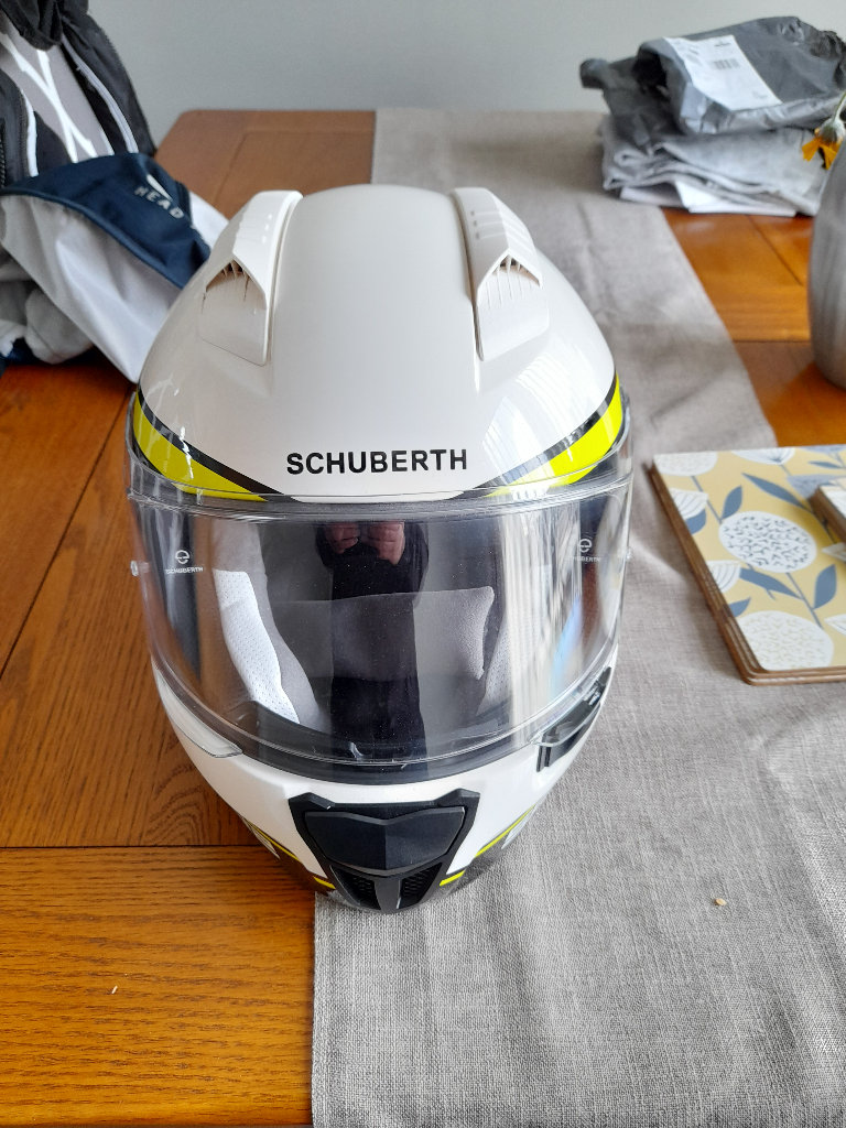 Schuberth sr2 helmet, bought February 22 , a little bit too tight for me, size 59 which equates to a large, worn twice about 50 miles in new condition, top quality helmet.