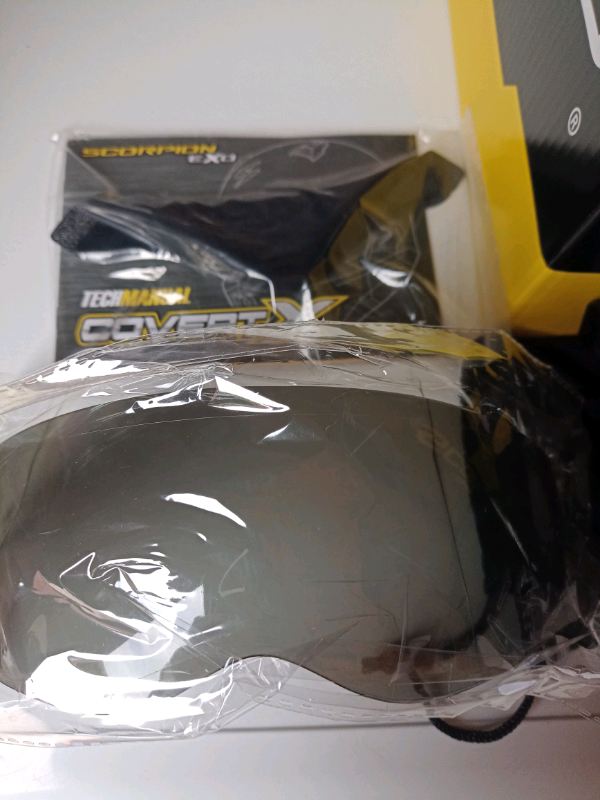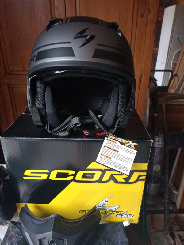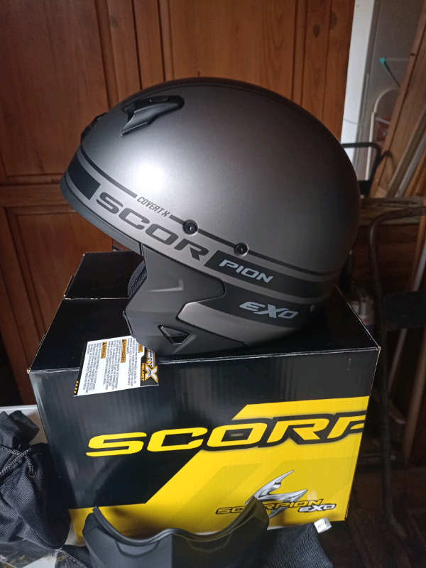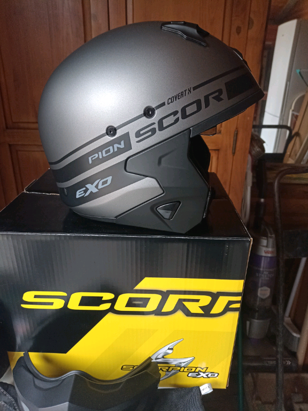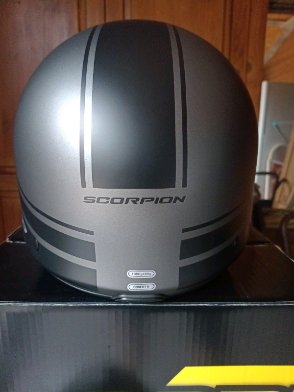 Scorpion covert x motorcycle helmet. Brand new with tags and spare visor.colour matt silver and black. Size large. Collection only