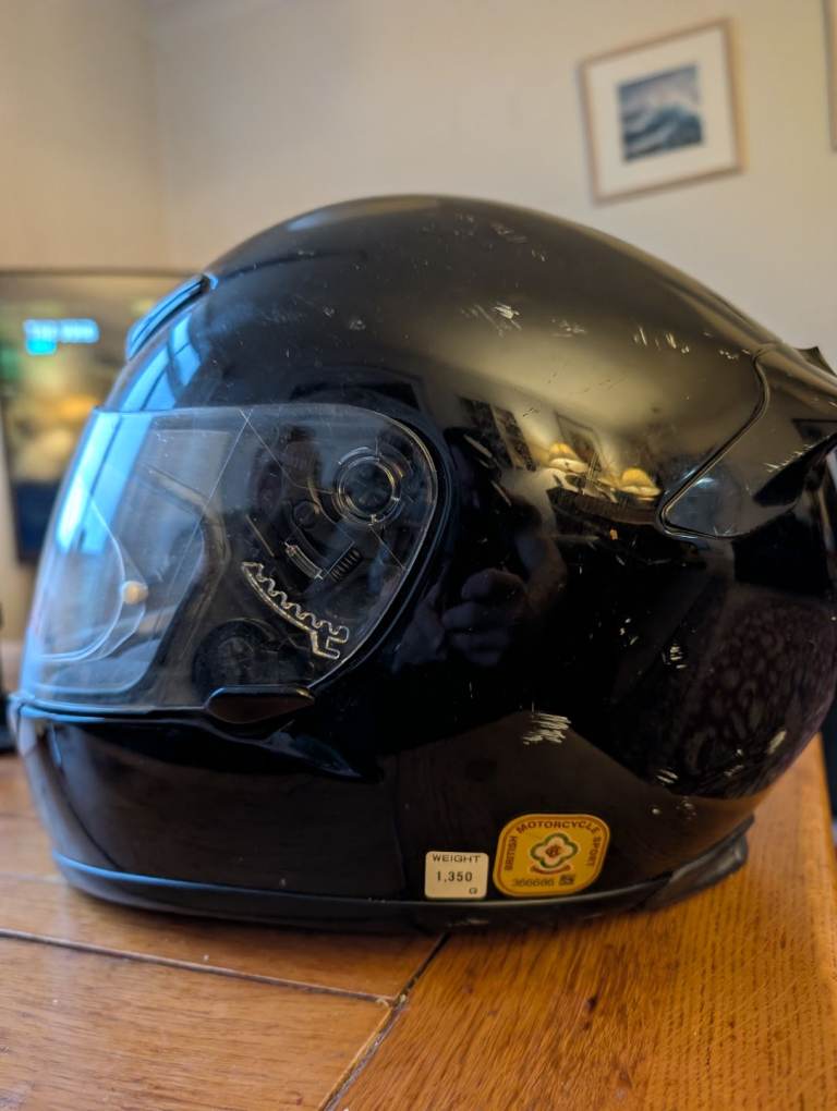 Pre owned 5 year old Shoei helmet with official bag.