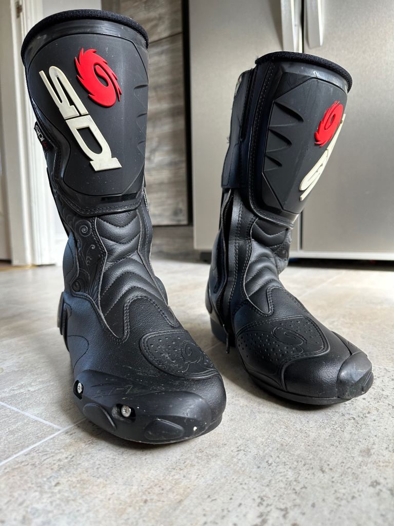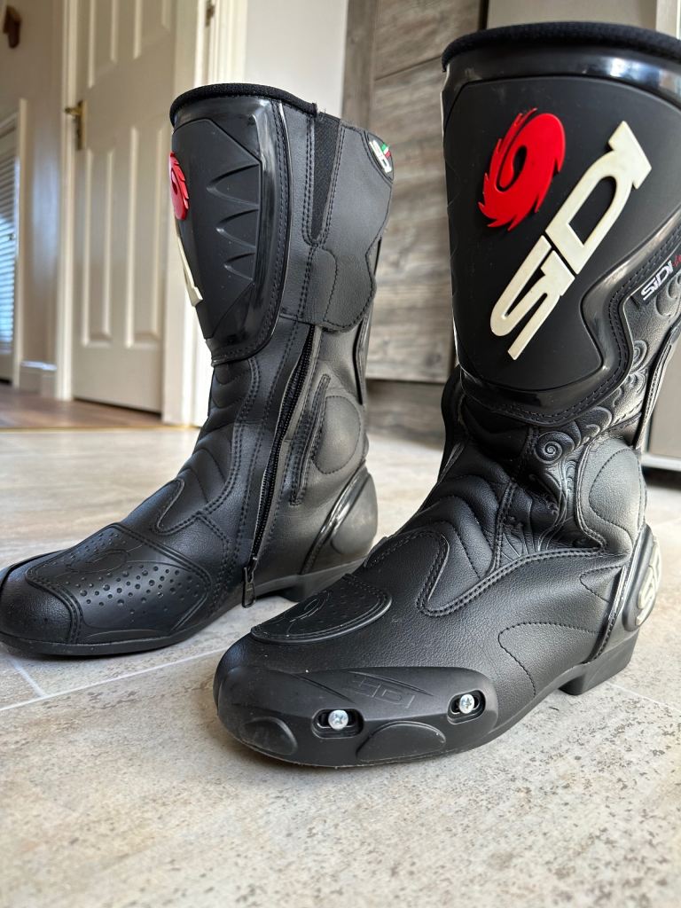 These boots are immaculate, no scrapes, crashes, were bought just before I sold my bike, so have had very little wear as can be seen from the pictures. Come from a smoke and pet free home.