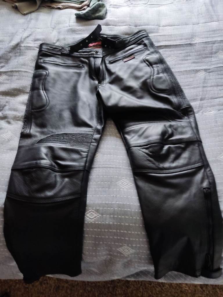 Posting for 8+ yearsSkintan Black Leather Motorbike Trousers W36 L27 Worn once